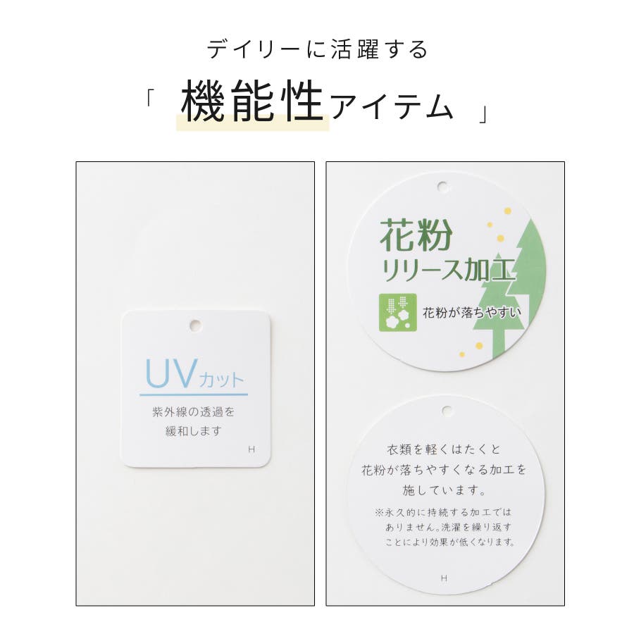 紫外線の透過を緩和する『UVカット』機能と、軽くはたくと花粉が落ちやすくなる『花粉リリース加工』をプラス。