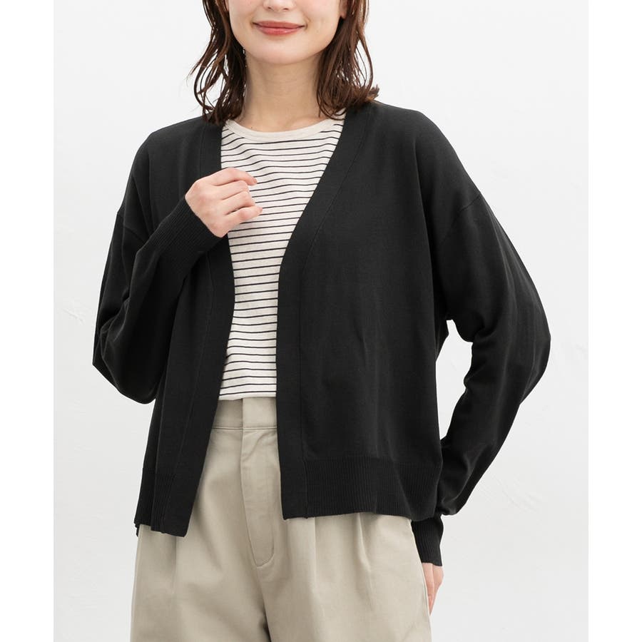 ボタンレスで手軽に羽織れるシンプルデザイン。