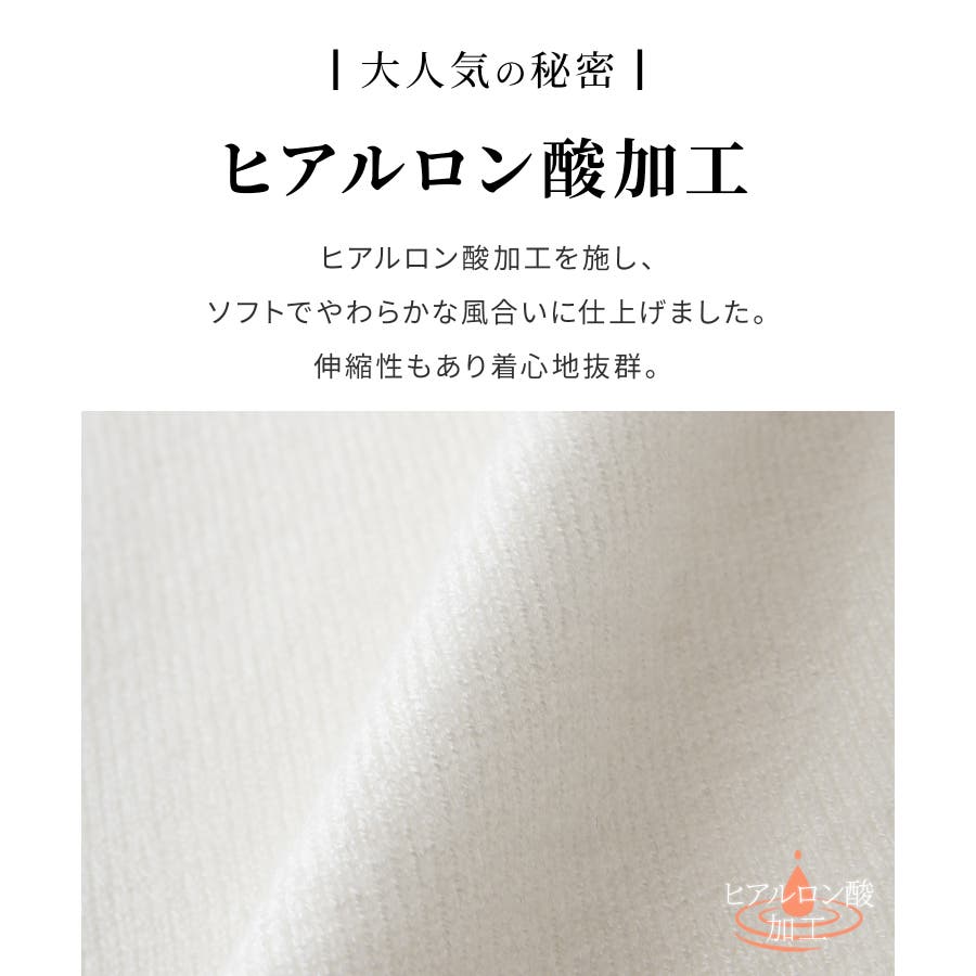 軽くてもちもちとした糸に『ヒアルロン酸加工』で潤いをプラスした、程良い厚みでしっとりソフトな風合いの『しなやかニット』素材。