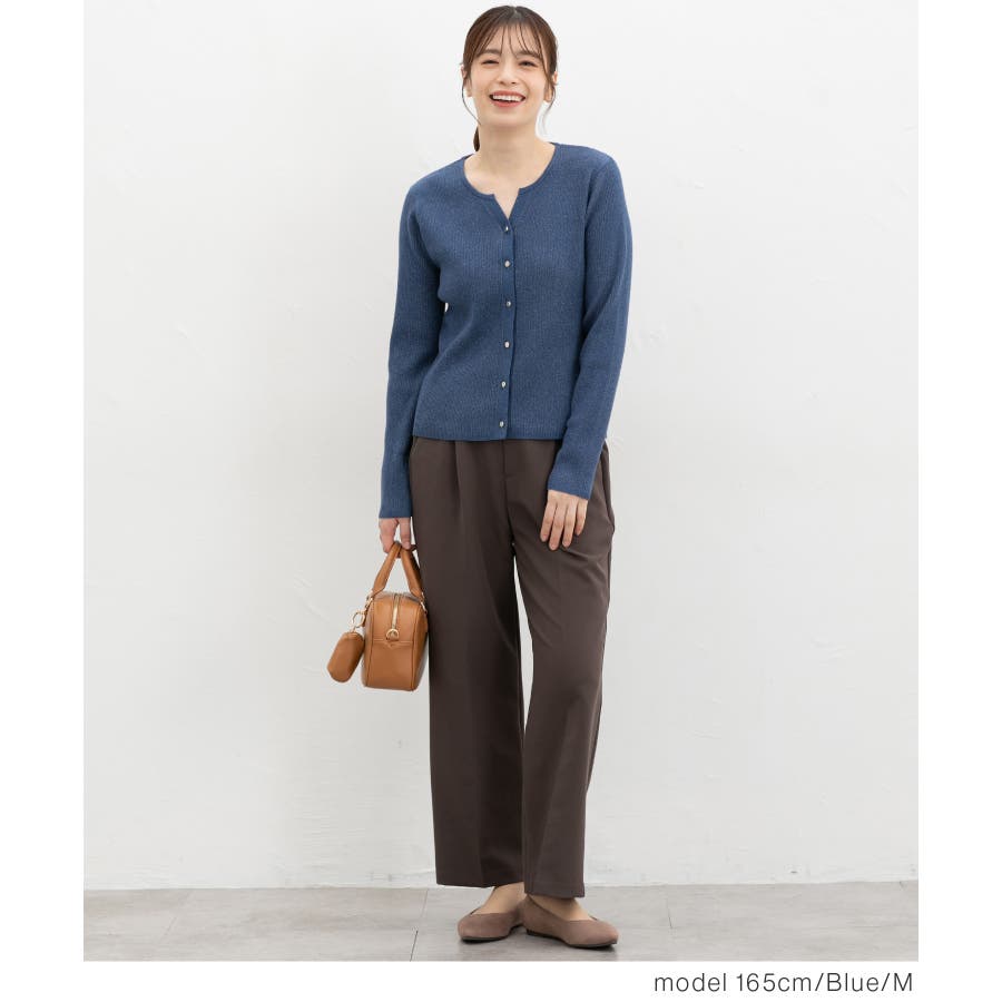 顔回りをすっきり見せるキーネックが、さりげない大人な抜け感を演出してくれるデザイン。