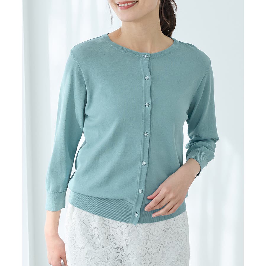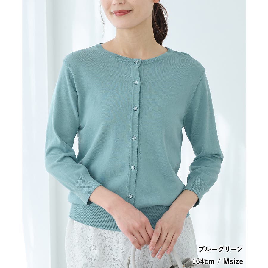 商品カテゴリ:6460321599 トップス カーディガン ハニさら オフィス きれいめ UVカット 接触冷感 クルーネック フラワーボタン フロントボタン レーヨン混 フェミニン 夏 白 黒 カテゴリ103007 tops cardigan 上着 カーデ 羽織り 冷房対策 カーデガン 7分袖 7部袖 7分丈 七分袖 8分袖 8部袖 8分丈 八分袖 9分袖 9部袖 9分丈 九分袖 半端袖 快適 FP502 おしゃれ オフィスカジュアル 通勤 通勤スタイル 通勤服 大人女子 きれいめカジュアル きちんと服 オフィス服 会社 オフィススタイル かっちり 清潔感 コンサバ 上品 大人 20代 30代 40代 アラサー OL トレンド 流行 快適シリーズ ひんやり さらり快適 紫外線対策 紫外線カット 日焼け対策 機能素材 クールタッチ 冷感 涼しい cool クール 丸首 ラウンドネック Uネック フラワー釦 花型ボタン 前ボタン 前開き 前釦 ボタン ナイロン混 リサイクルレーヨン ニットカーディガン 可愛い 清楚 大人可愛い タグハニさら(HS-11) Sサイズ S 小さいサイズ Mサイズ Lサイズ LLサイズ LL 大きいサイズ シーズン夏 夏物 夏服 夏秋 初秋 秋 秋物 秋服 新作 新着 アイボリー ホワイト ブラック ネイビー 紺 ブルー 青 ピンク 桃色 グリーン 緑 みどり ブルーグリーン 1599 646-32-1599 6460321599 GLACIER グラシア honeys ハニーズ レディースファッション ladies fashion 女性 女 レディース ファッション 女性服 服 婦人服 646032159931 7分袖フラワー釦カーデ 価格2680