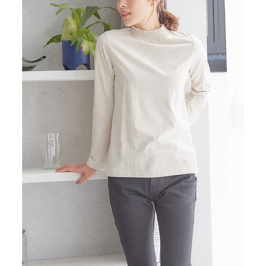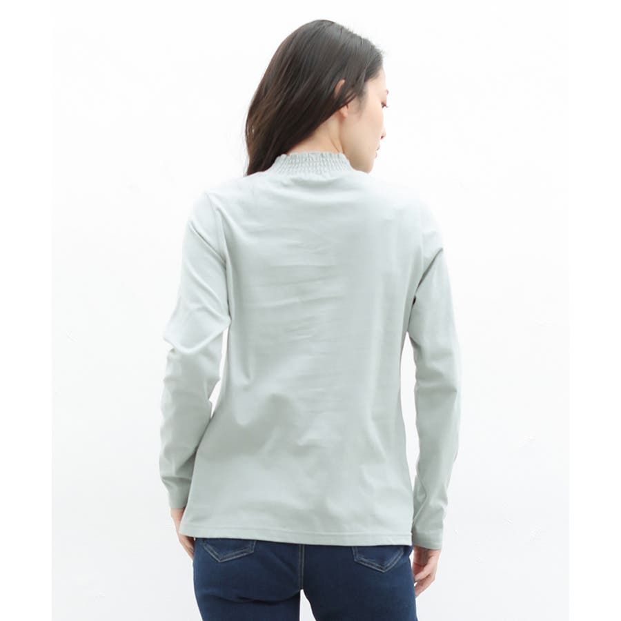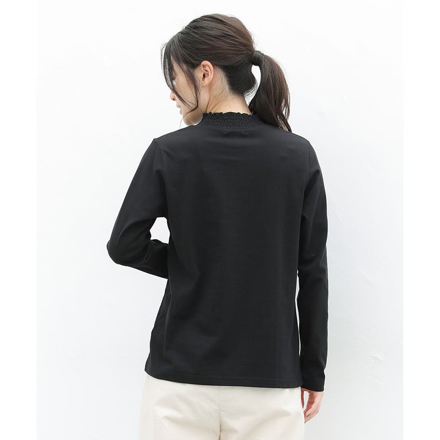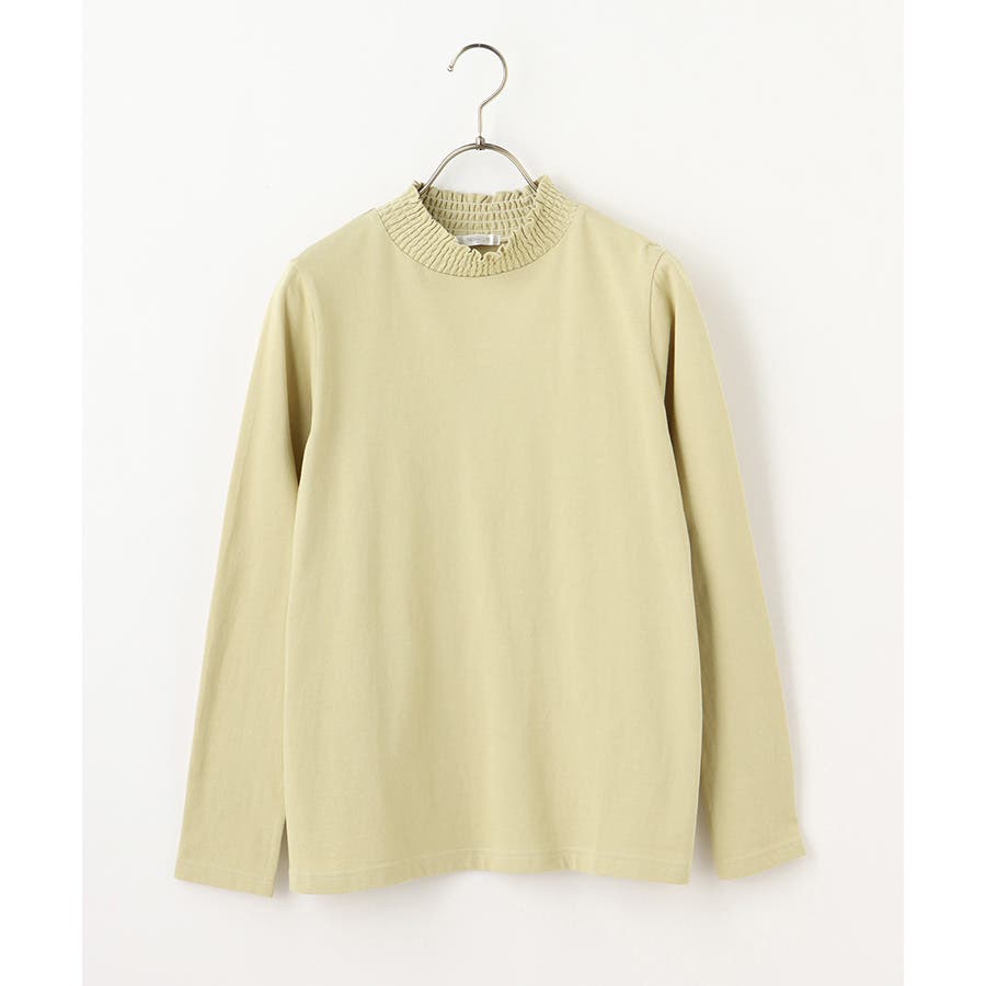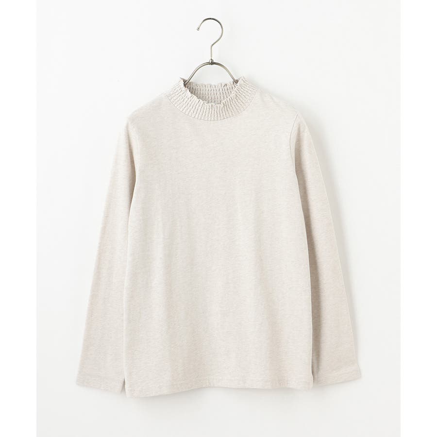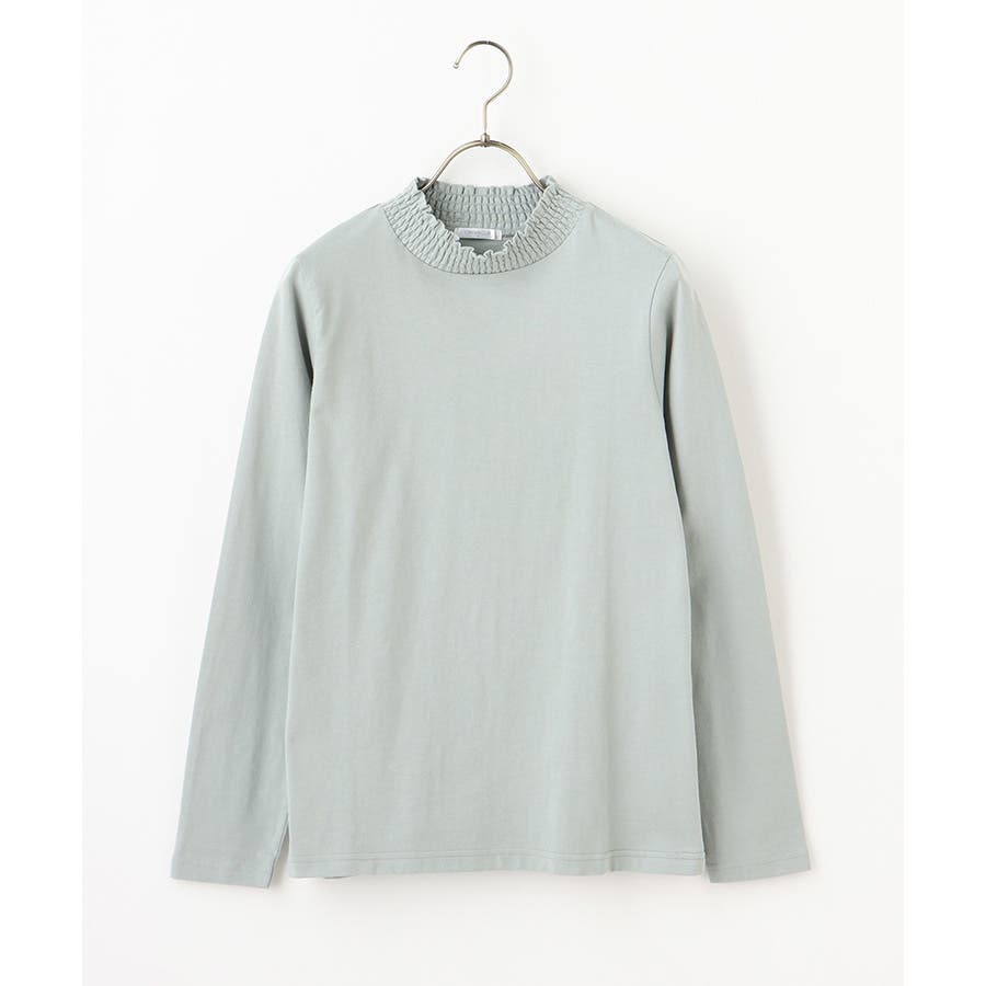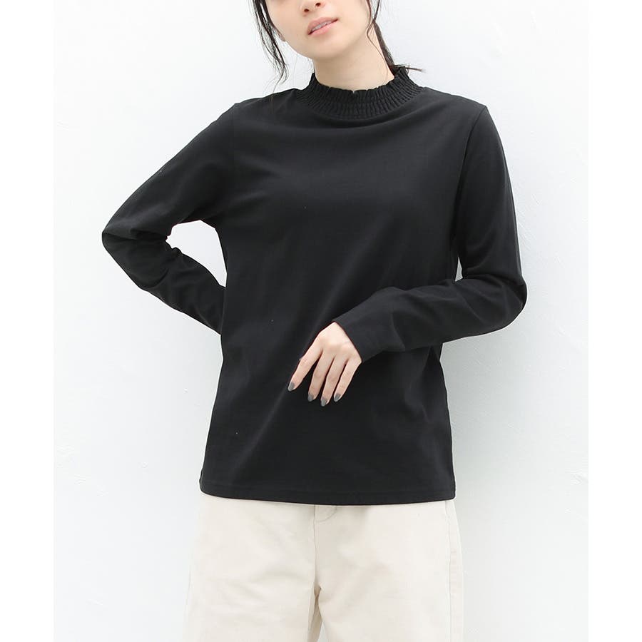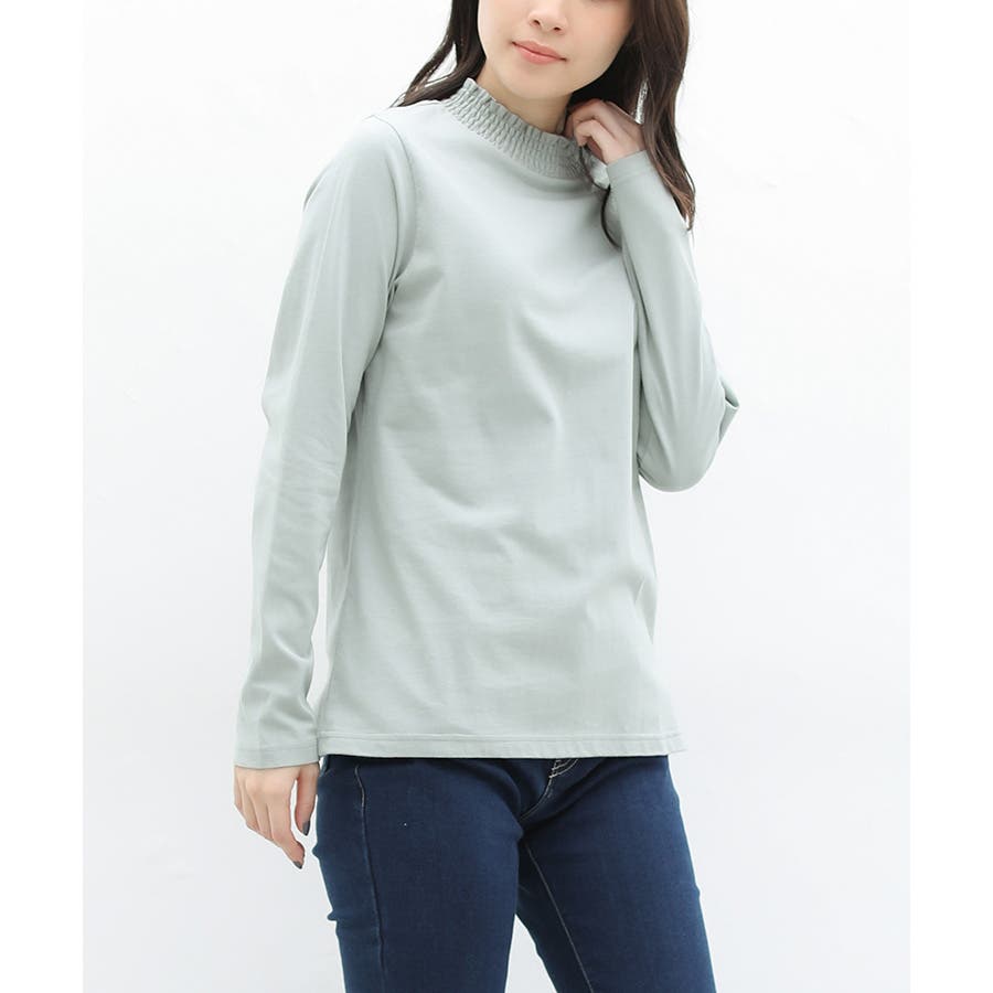 首元のシャーリングが大人可愛いハイネックトップス。