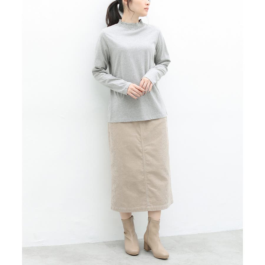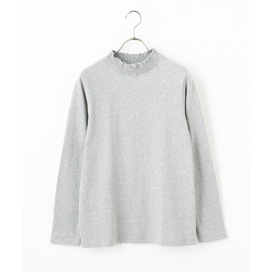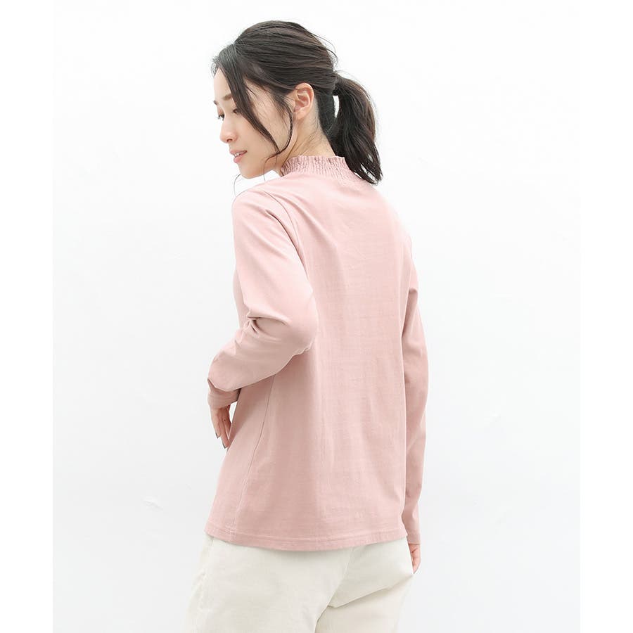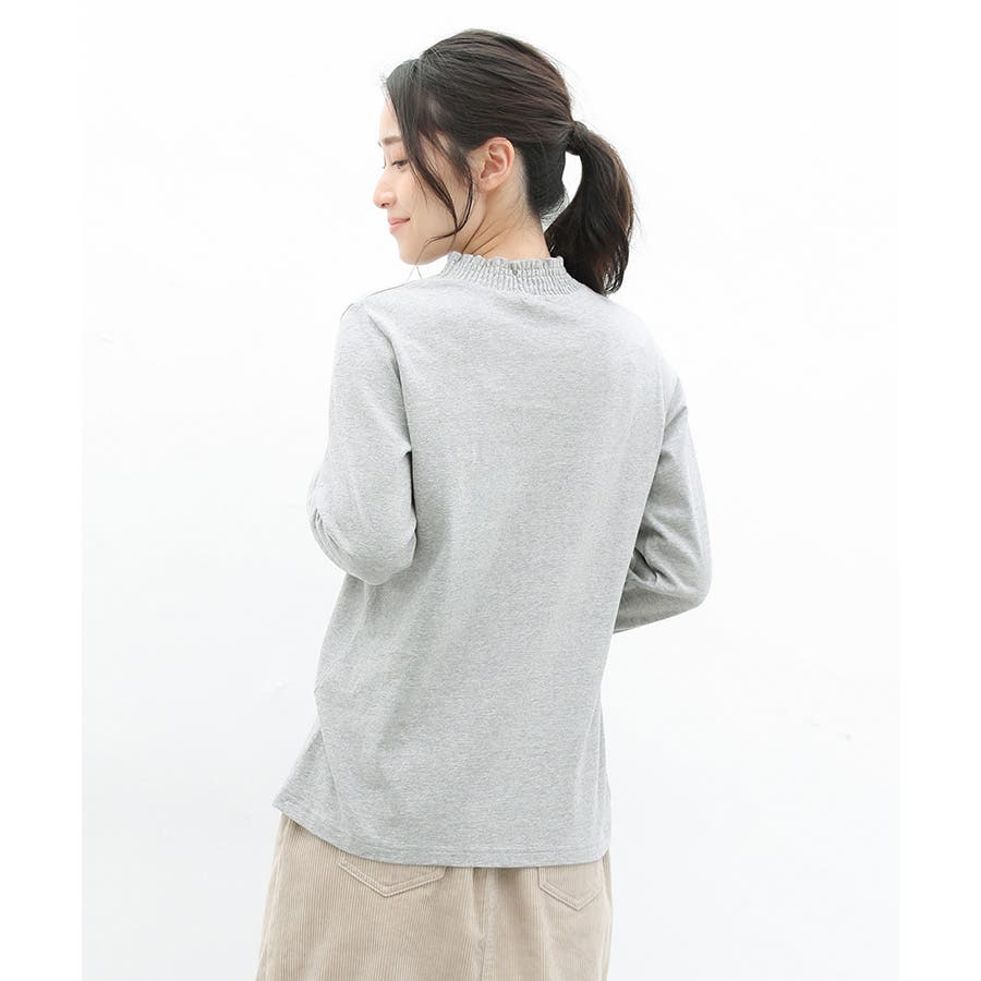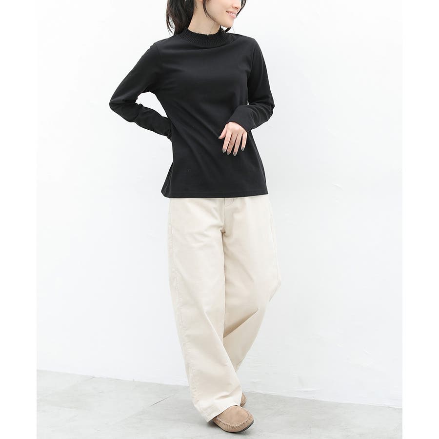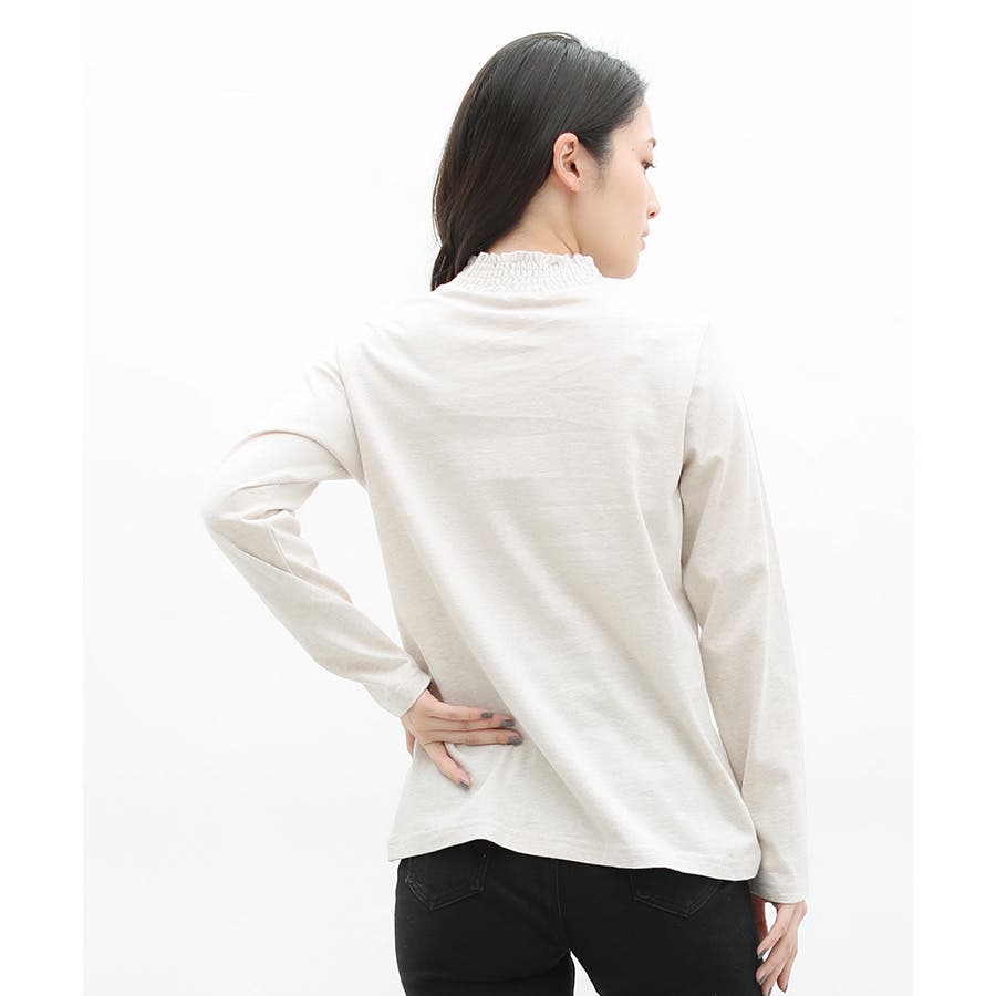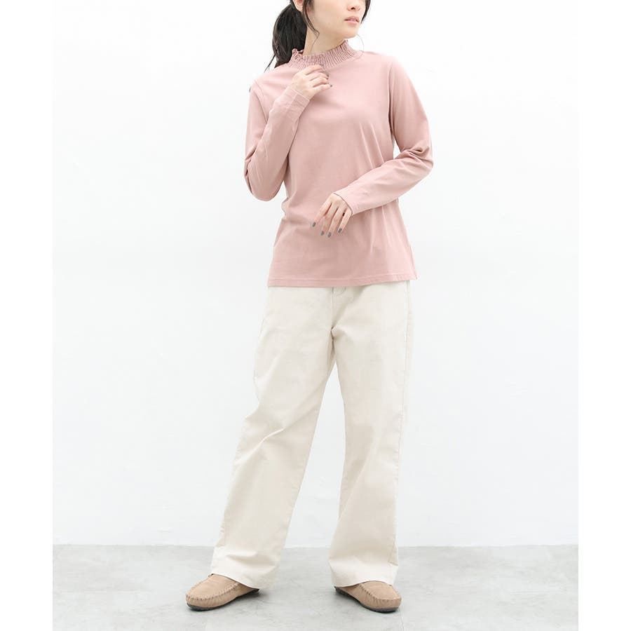 首元のシャーリングが大人可愛いハイネックトップス。
