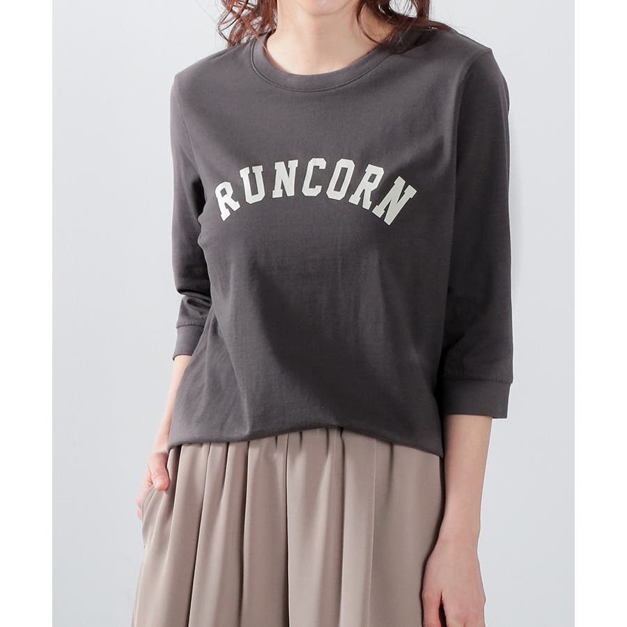 人気のカレッジ風ロゴがおしゃれな7分袖トップス。