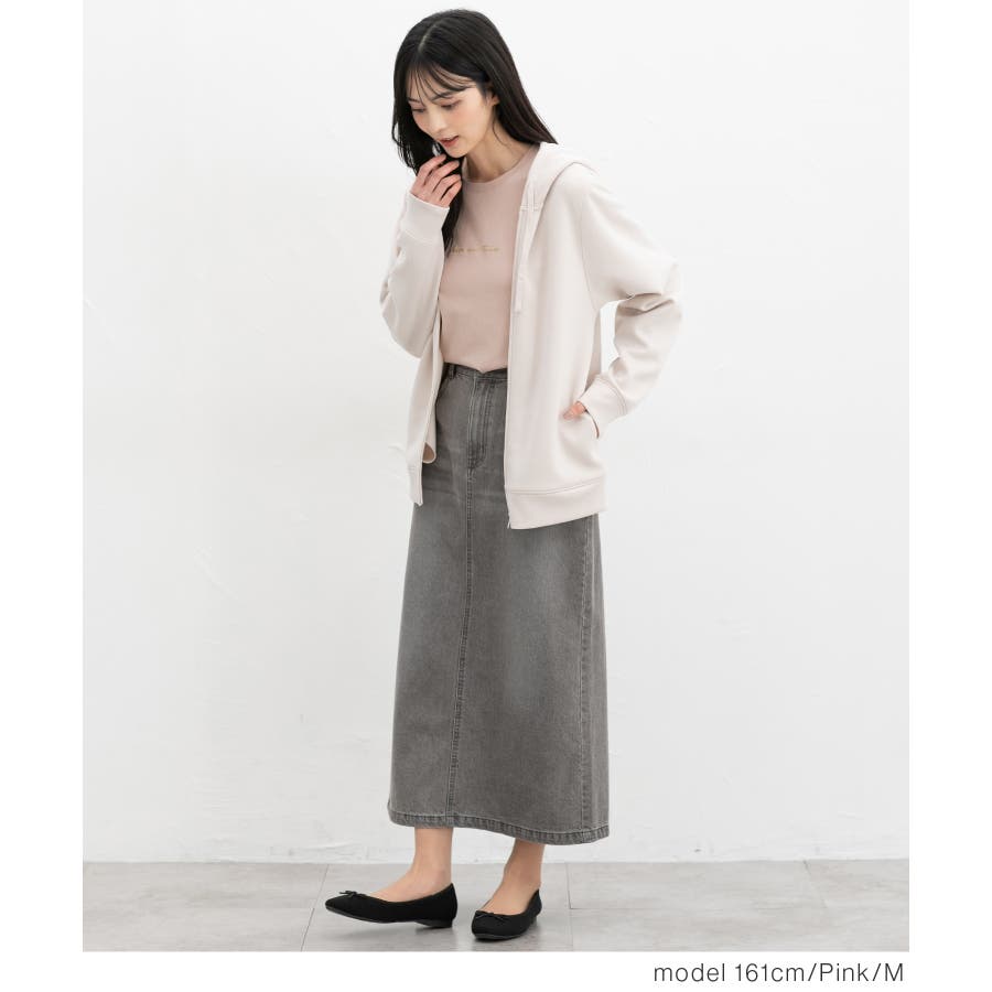 ベーシックなクルーネックで、ゆったりめの幅と腰回りが隠れる丈感。