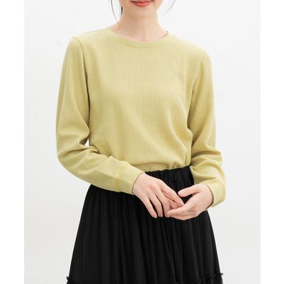 優しげなクルーネックと控えめなラウンド裾が女性らしいデザイン。