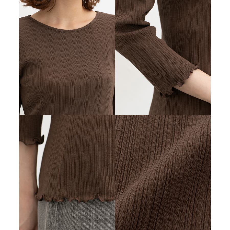 袖口と裾のメロー使いでさりげない可愛さをプラスしたシンプルなデザイン。