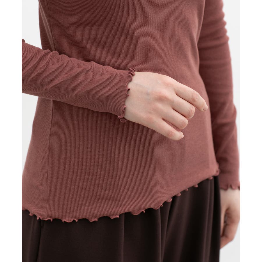 ストレッチの利いた、柔らかな綿混リブ素材。
