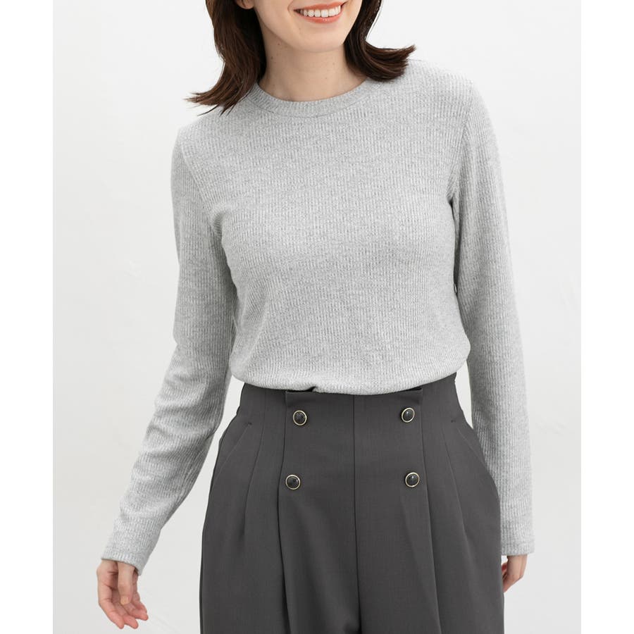 開きすぎないクルーネックの、上品でシンプルなデザイン。