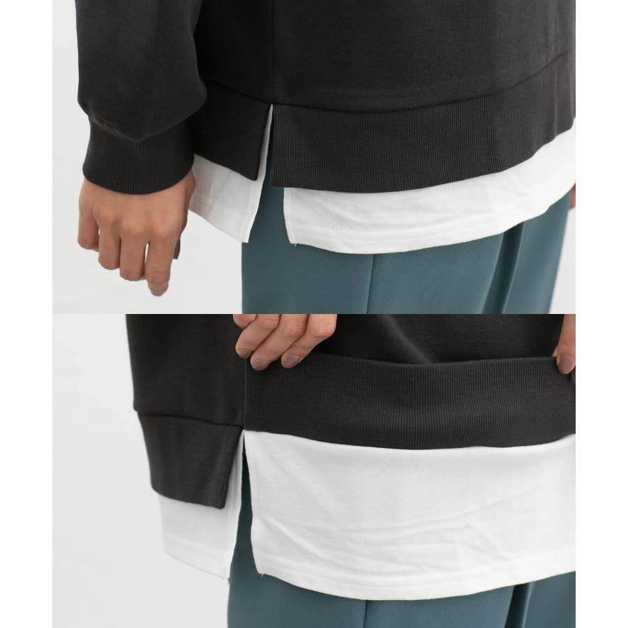 1枚でお洒落な着こなしが叶う、レイヤード風デザイン。