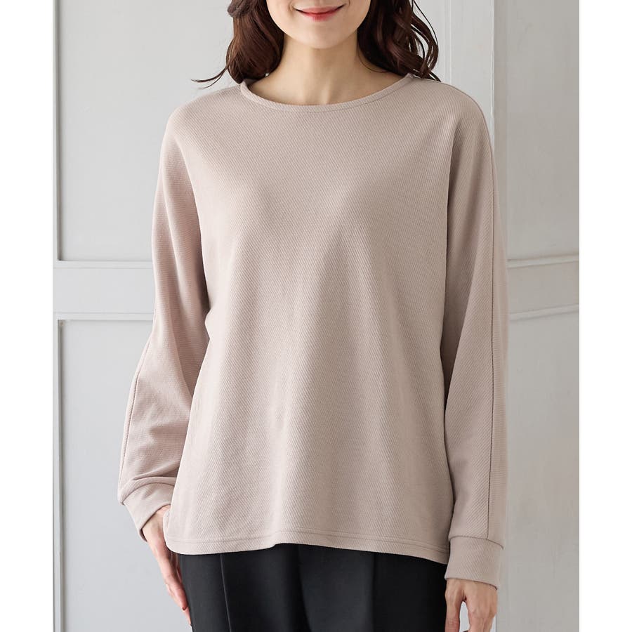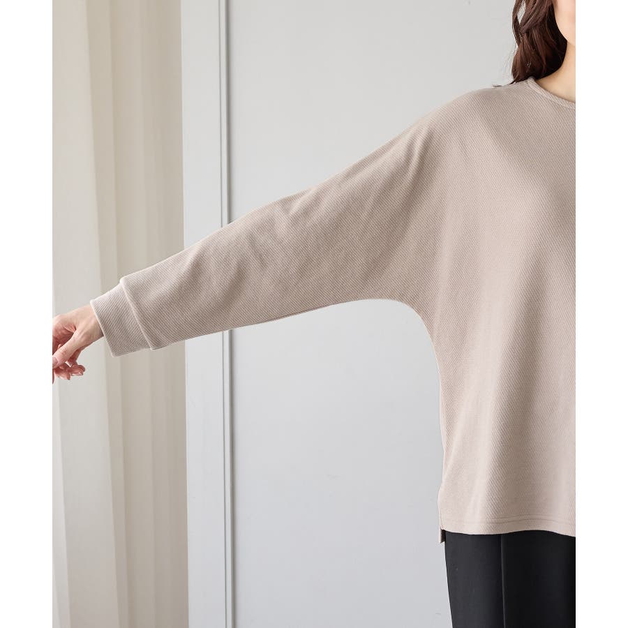 ゆったりシルエットを袖口の切り替えで引き締めた、手首のほっそり見せも叶うドルマンデザイン。
