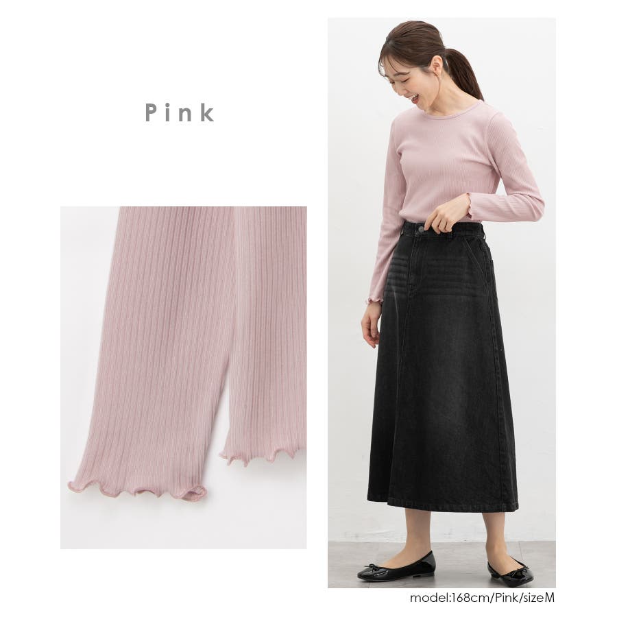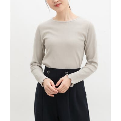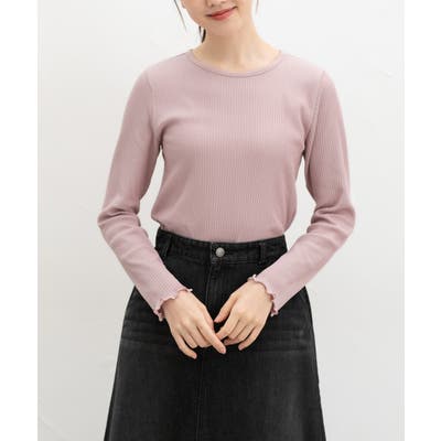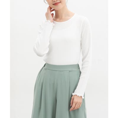 袖口と裾のメロー使いが大人可愛いアクセントになるシンプルデザイン。