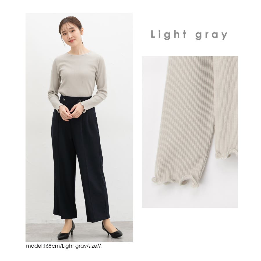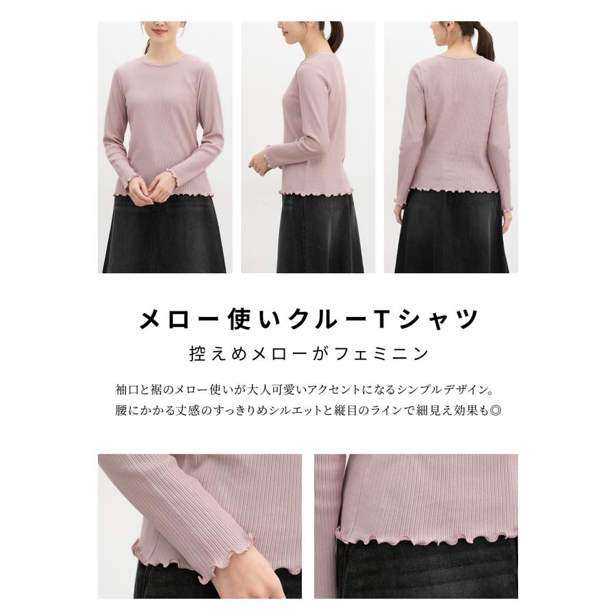 商品カテゴリ:6540119908 トップス カットソー 長袖 Tシャツ ロンT 長袖Tシャツ クルーネック メロー 綿混 リブ シンプル オールシーズン 白 黒 カテゴリ101010 tops プルオーバー 長そで T-shirt ロングTシャツ ロンティー Tシャツ長袖 ティシャツ 丸首 ラウンドネック Uネック フリル フリフリ メロウ 袖口メロー 裾メロー cotton 天然素材 コットン 綿 縦ライン 縦目 リブ編み ストライプラインリブ スタンダード ベーシック ラフ 定番 カジュアル ママコーデ ストライプ 柄 柄物 Sサイズ S 小さいサイズ Mサイズ Lサイズ LLサイズ LL 大きいサイズ FP701 ノンエイジ 10代 20代 30代 40代 50代 エイジレス 大人 おしゃれ 大人カジュアル ママ 公園 ママファッション きれいめ シーズンオール 春 春物 春服 春夏 夏 夏物 夏服 秋 秋物 秋服 秋冬 冬 冬物 冬服 新作 新着 オフ オフホワイト アイボリー ホワイト ブラック サックス 青 ブルー ピンク 桃色 ライトグレー グレー 灰色 9908 654-11-9908 6540119908 CINEMACLUB シネマクラブ honeys ハニーズ レディースファッション ladies fashion 女性 女 レディース ファッション 女性服 服 婦人服 654011990831 メロー使いクルーTシャツ 価格1480