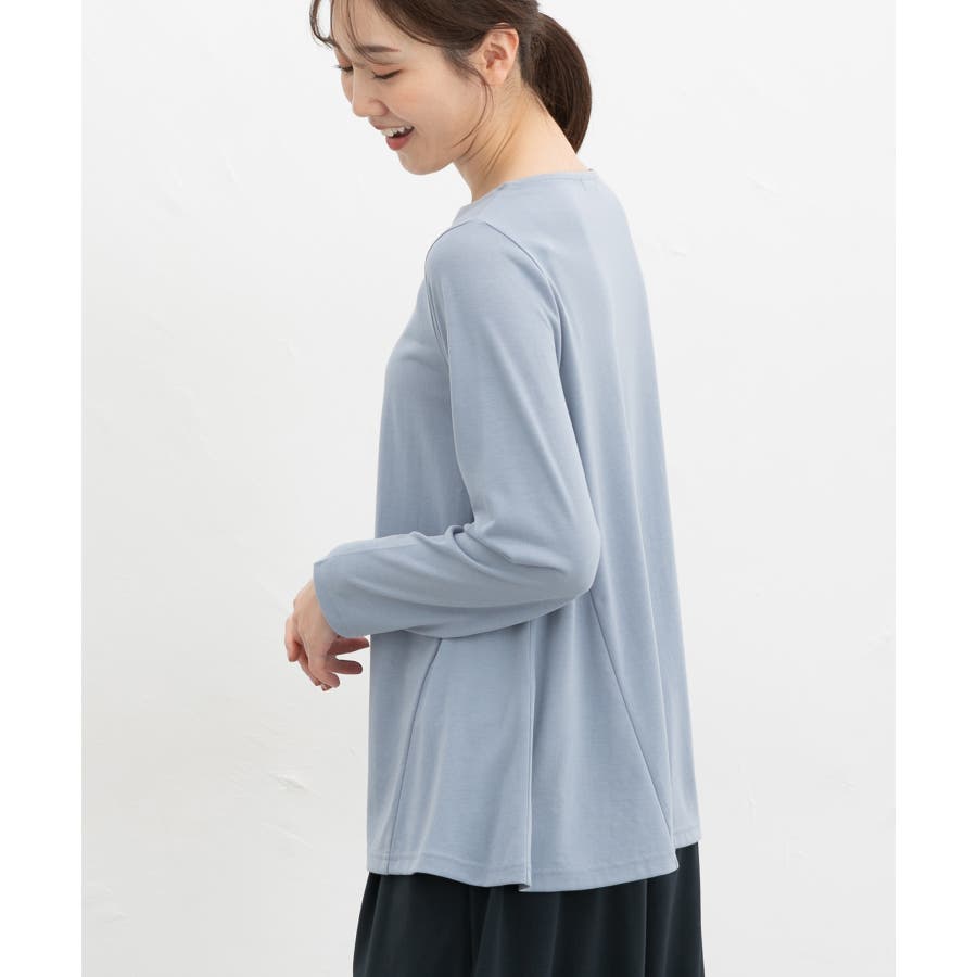 サイドの切り替えでさりげなく細見えを叶え、ヒップまで隠れる丈感で体型もカバー。