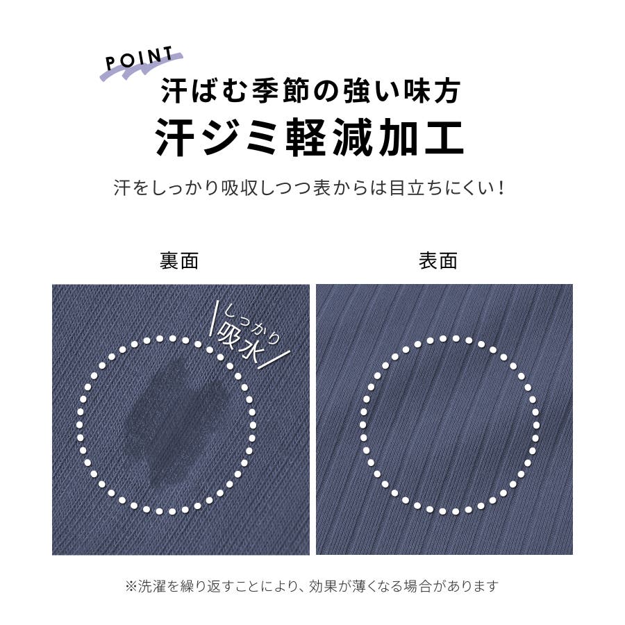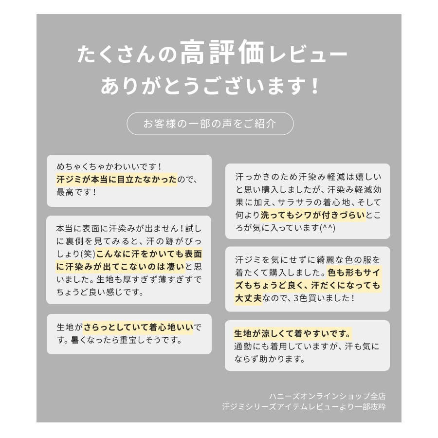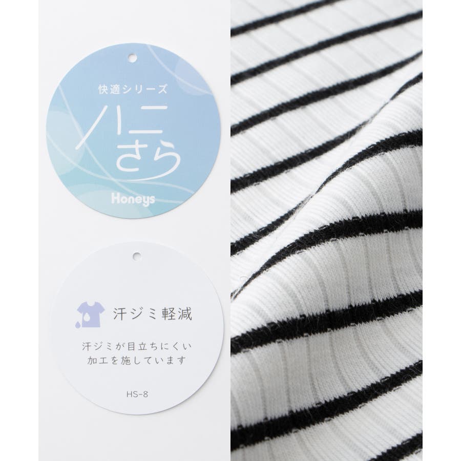内側の汗をしっかり吸収しながら表からは目立ちにくい、『汗ジミ軽減加工』が付いた『ハニさら』アイテム。