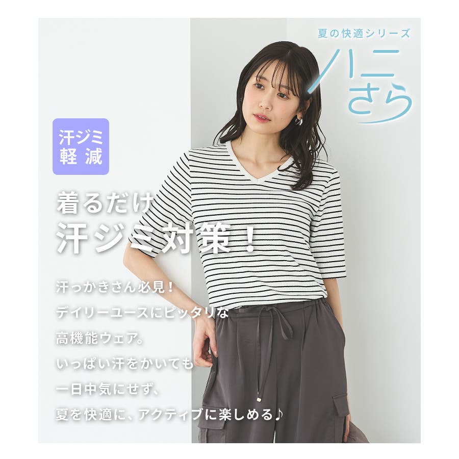 商品カテゴリ:6540139336 トップス カットソー 半袖 ハニさら Tシャツ 半袖Tシャツ 汗ジミ軽減 レーヨン混 無地 ボーダー柄 Vネック ストレッチ テレコ フェミニン 夏 白 黒 カテゴリ101003 tops プルオーバー 半そで 快適 T-shirt ティシャツ 半袖カットソー Tシャツ半袖 快適シリーズ ひんやり 汗染み軽減 汗じみ軽減 汗対策 脇汗 汗ジミ軽減加工 機能素材 無地Tシャツ 無地トップス ボーダー柄Tシャツ ボーダー柄トップス ボーダーTシャツ ボーダートップス 伸縮 伸びる 動きやすい シンプル カジュアル 大人可愛い フェミカジュ おしゃれ タグハニさら(HS-8) Sサイズ S 小さいサイズ Mサイズ Lサイズ LLサイズ LL 大きいサイズ FP701 ノンエイジ 10代 20代 30代 40代 50代 エイジレス 大人 スタンダード ベーシック ラフ 定番 大人カジュアル ママコーデ ママ 公園 ママファッション きれいめ シーズン夏 夏物 夏服 夏秋 初秋 秋 秋物 秋服 新作 新着 オフ オフホワイト アイボリー ホワイト ブラック ブルー 青 ピンク 桃色 ダークピンク グリーン 緑 みどり ブルーグリーン クロ オフ×クロ クロ×オフ ベージュ 肌色 ベージュ×クロ 9336 654-13-9336 6540139336 CINEMACLUB シネマクラブ honeys ハニーズ レディースファッション ladies fashion 女性 女 レディース ファッション 女性服 服 婦人服 654013933631 汗ジミ軽減半袖VネックT 価格1480