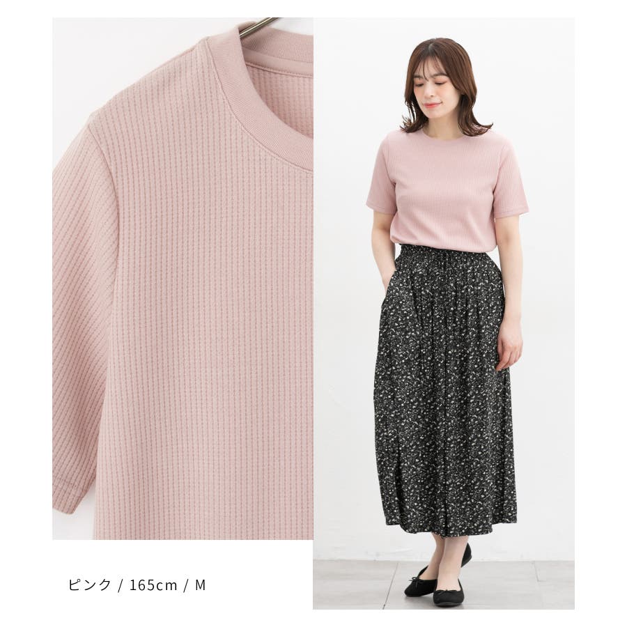 商品カテゴリ:6540139384 トップス カットソー 半袖 UVカット Tシャツ 半袖Tシャツ 無地 ボーダー柄 花柄 綿混 クルーネック ラウンド裾 カジュアル 夏 白 黒 カテゴリ101003 tops プルオーバー 半そで 紫外線対策 紫外線カット 日焼け対策 機能素材 T-shirt ティシャツ 半袖カットソー Tシャツ半袖 無地Tシャツ 無地半袖Tシャツ ボーダー柄Tシャツ ボーダー柄半袖Tシャツ 花柄Tシャツ 花柄半袖Tシャツ cotton 天然素材 コットン 綿 ワッフル素材 丸首 ラウンドネック Uネック 裾ラウンド ラウンドヘム シンプル フェミニン 大人可愛い フェミカジュ おしゃれ タグUVカット Sサイズ S 小さいサイズ Mサイズ Lサイズ LLサイズ LL 大きいサイズ FP701 ノンエイジ 10代 20代 30代 40代 50代 エイジレス 大人 スタンダード ベーシック ラフ 定番 大人カジュアル ママコーデ ママ 公園 ママファッション きれいめ シーズン夏 夏物 夏服 夏秋 初秋 秋 秋物 秋服 新作 新着 オフ オフホワイト アイボリー ホワイト スミクロ グレー 灰色 ブラック クロ オフ×コン ピンク 桃色 フラワー 花 柄 柄物 オートミール ベージュ オートミール花柄 オフ花柄 9384 654-13-9384 6540139384 CINEMACLUB シネマクラブ honeys ハニーズ レディースファッション ladies fashion 女性 女 レディース ファッション 女性服 服 婦人服 654013938431 半袖ワッフルTシャツ 価格1480