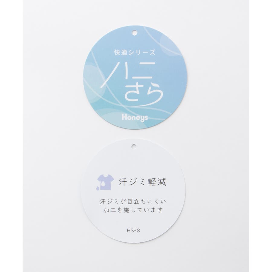 内側の汗をしっかり吸収しながら表からは目立ちにくい『汗ジミ軽減加工』の付いた『ハニさら』アイテム。