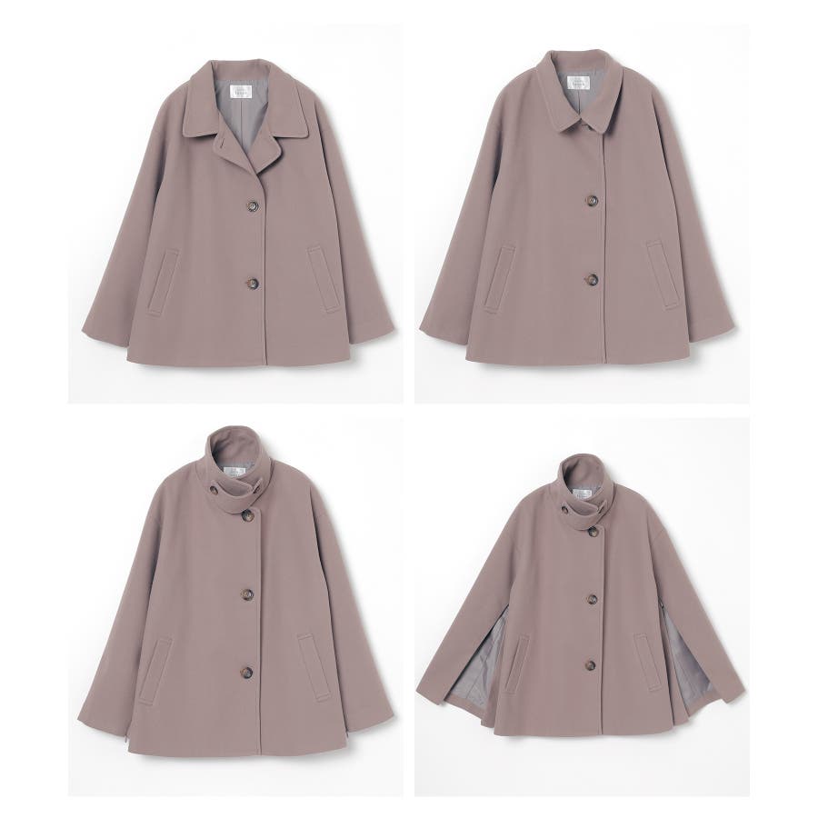 コーデや気分に合わせて、テーラードカラー・スタンドネック・ステンカラー、さらに袖下のファスナーを開けて温度調節もしやすく、ポンチョ風のスタイリングも楽しめてマルチに使えるデザイン。