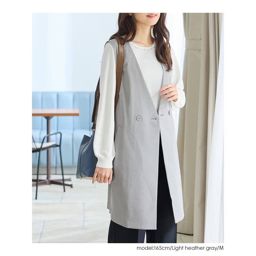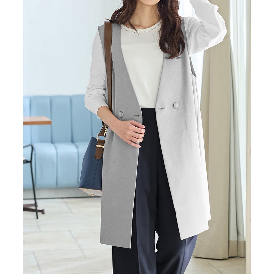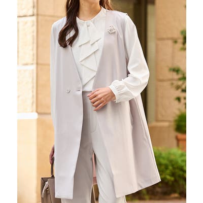 さっと羽織るだけでおしゃれに決まる、2つボタンのカラーレスデザイン、ロングタイプ。