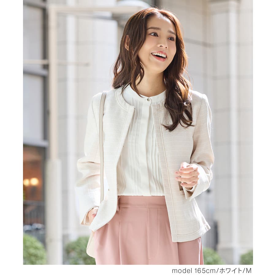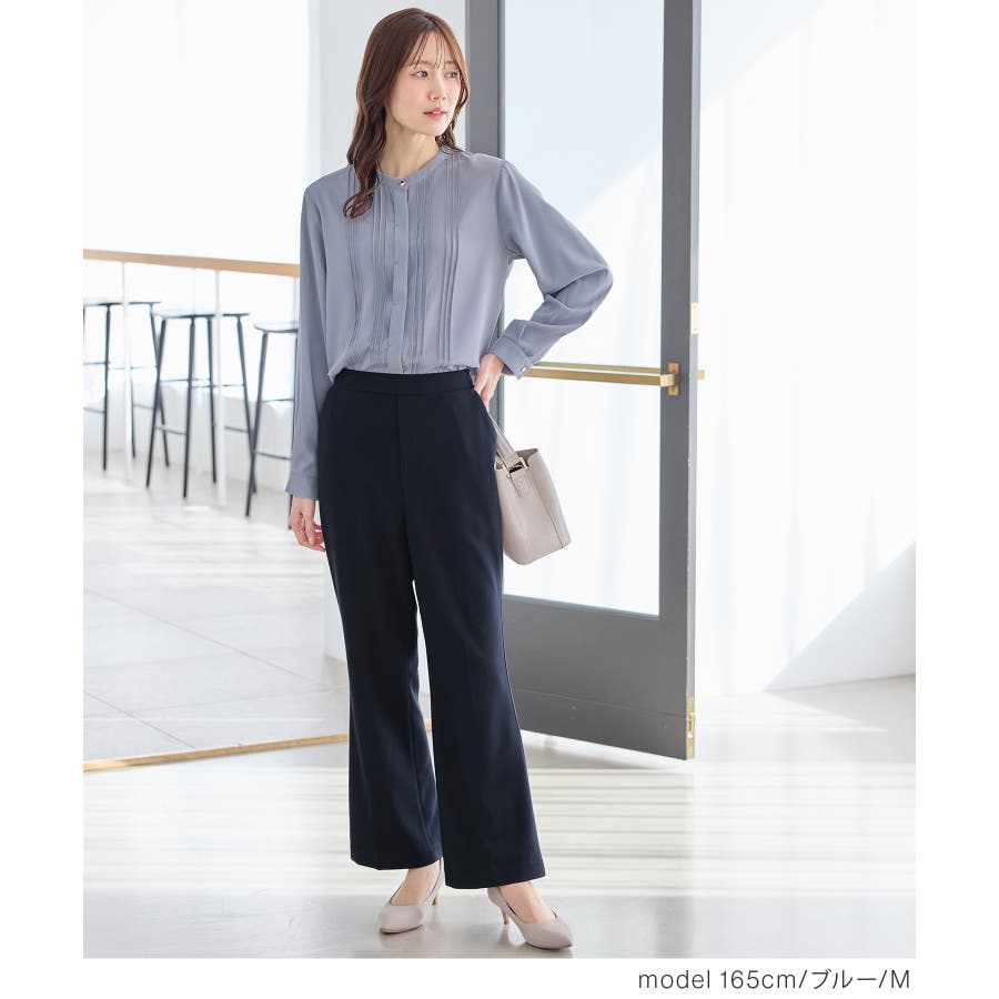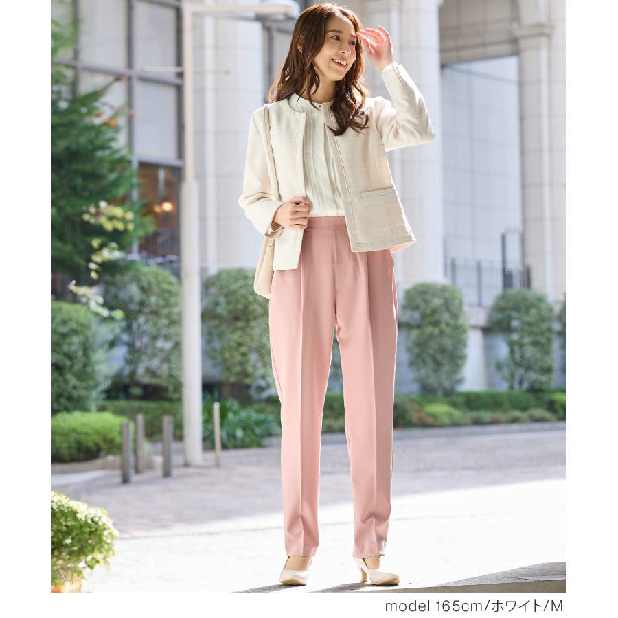 ジャケットにも合うサイズ感で通勤や入学式・卒業式などのセレモニーシーンにも使え、テーパードパンツやフレアスカートと合わせたきれいめスタイルに大活躍。