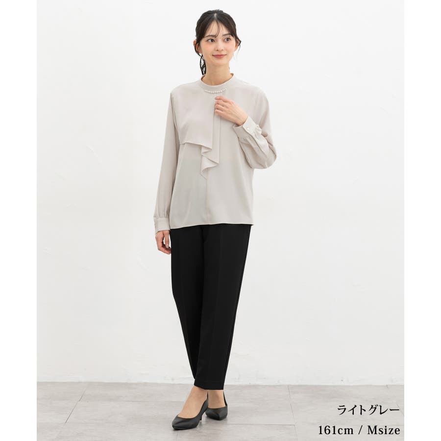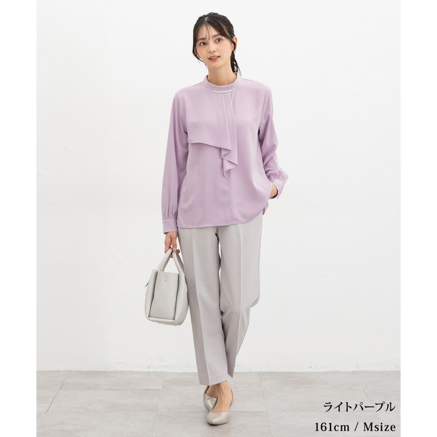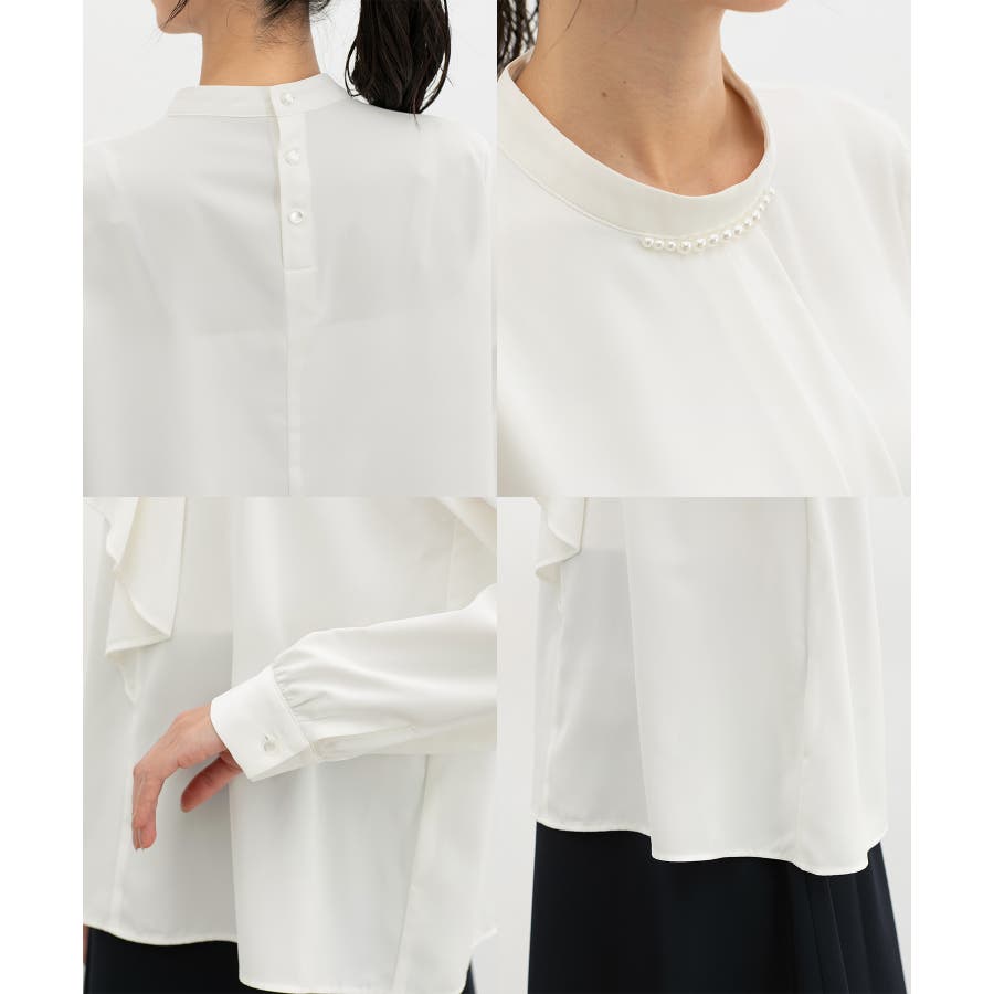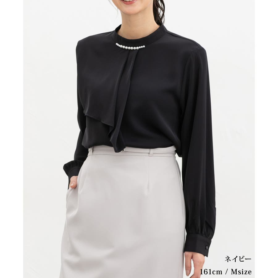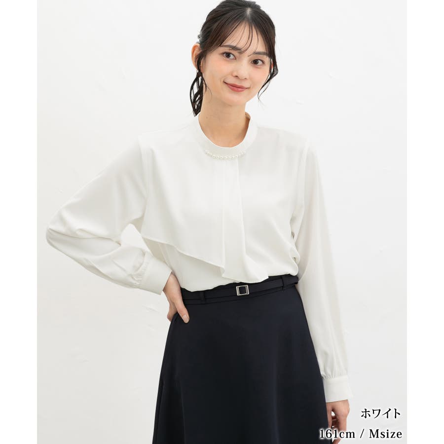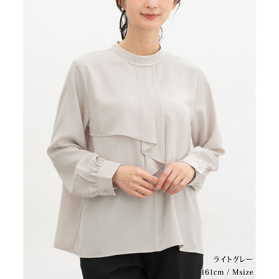 衿元のパール風ビーズがさりげなく華やかで上品な印象をプラス。