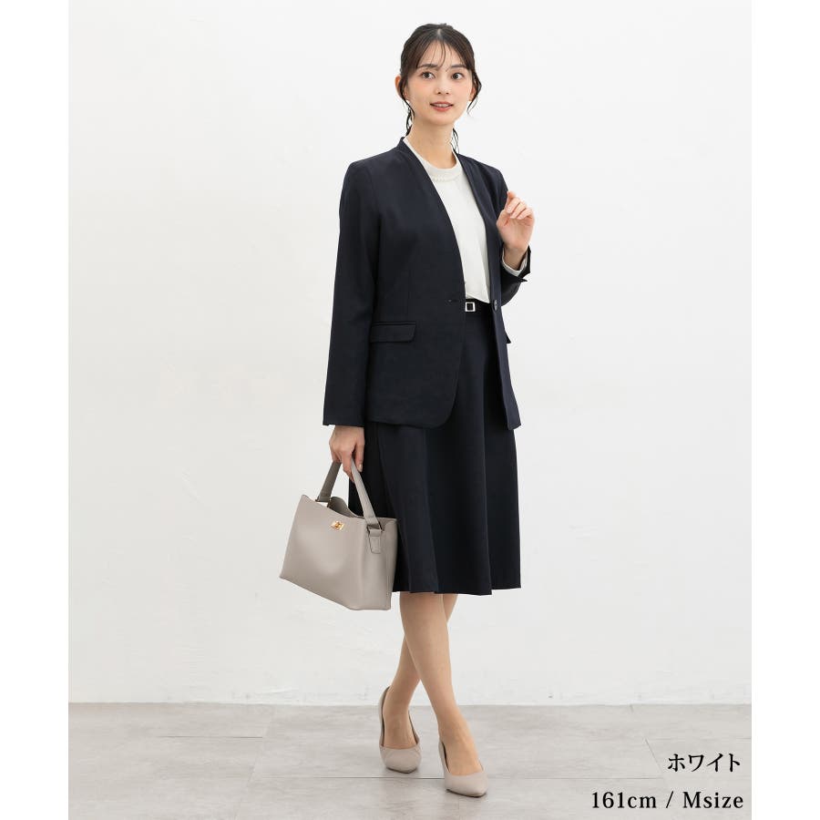 ジャケットにも合うサイズ感で通勤や入学式・卒業式などのセレモニーシーンにも使え、テーパードパンツやフレアスカートと合わせたきれいめスタイルに大活躍。