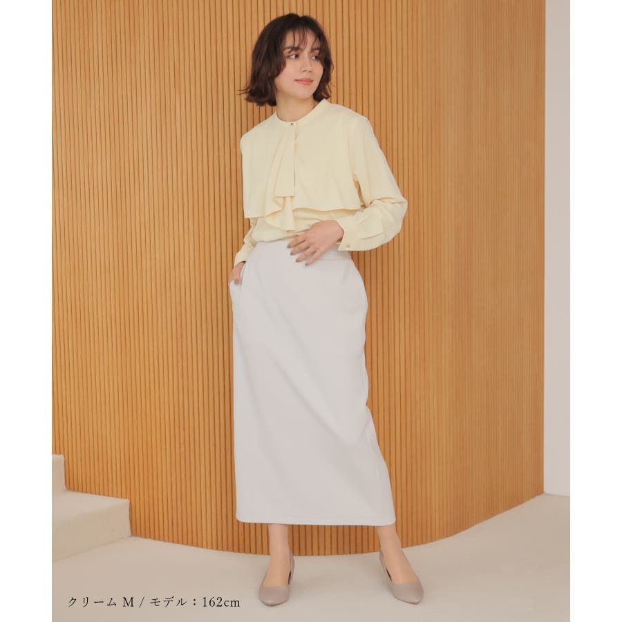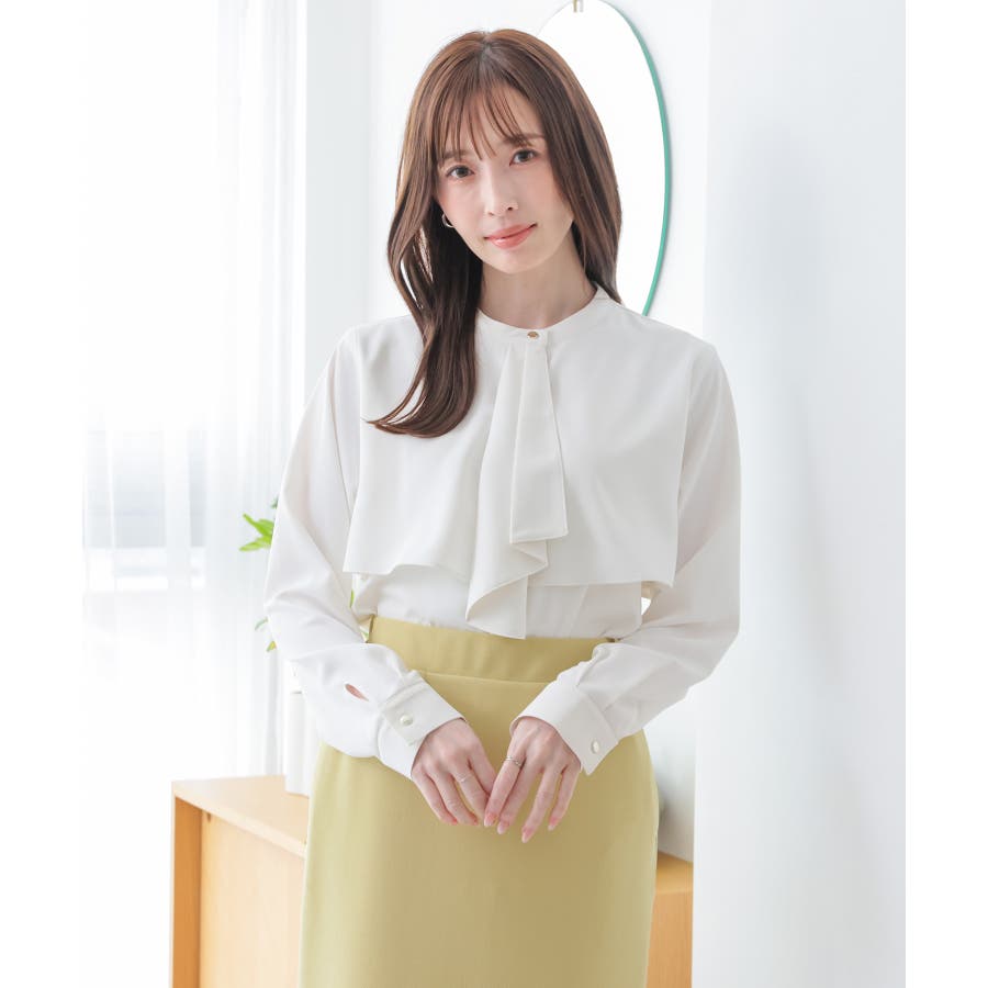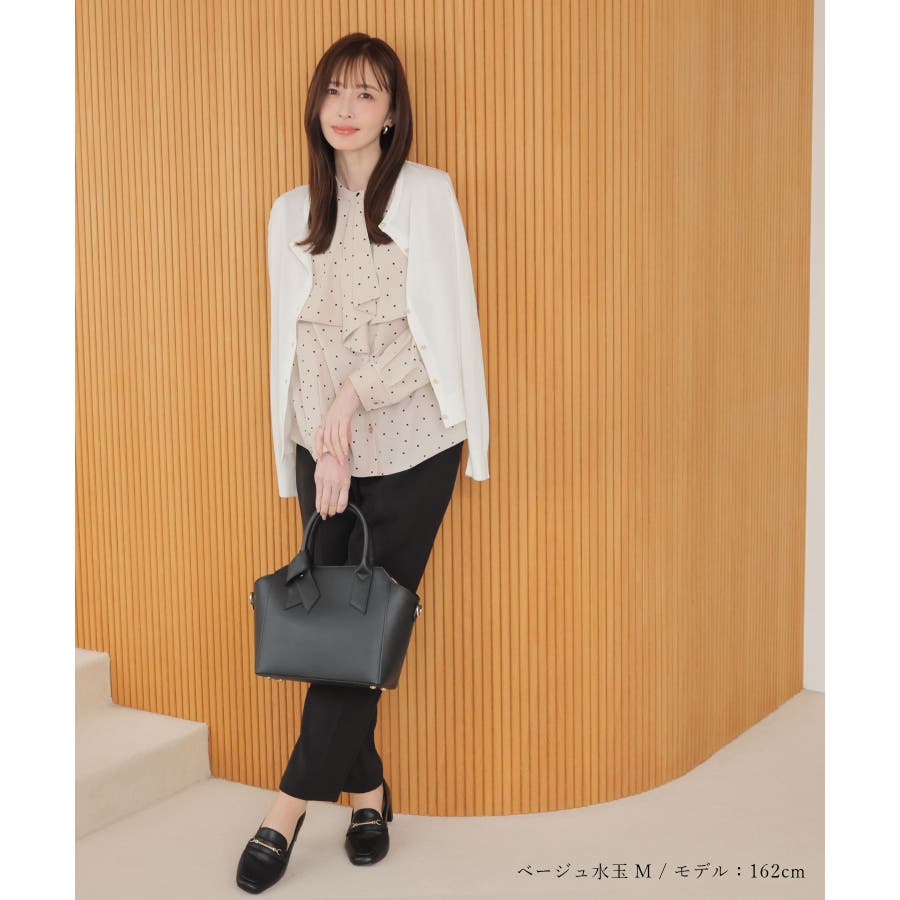 ジャケットにも合うサイズ感で通勤や入学式・卒業式などのセレモニーシーンにも使え、テーパードパンツやフレアスカートと合わせたきれいめスタイルに大活躍。