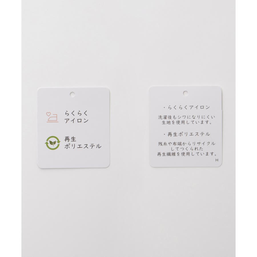 環境に優しい再生ポリエステルを使用した、洗濯後もシワになりにくくお手入れ簡単な『らくらくアイロン』素材。
