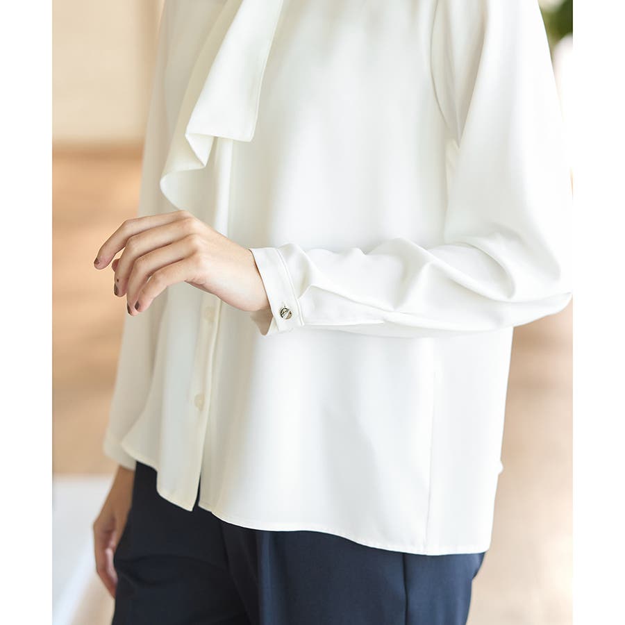 リボンを結ぶ必要のない、流れるようなドレープのボウタイが上品なデザイン。