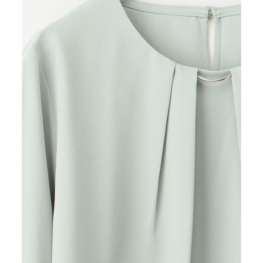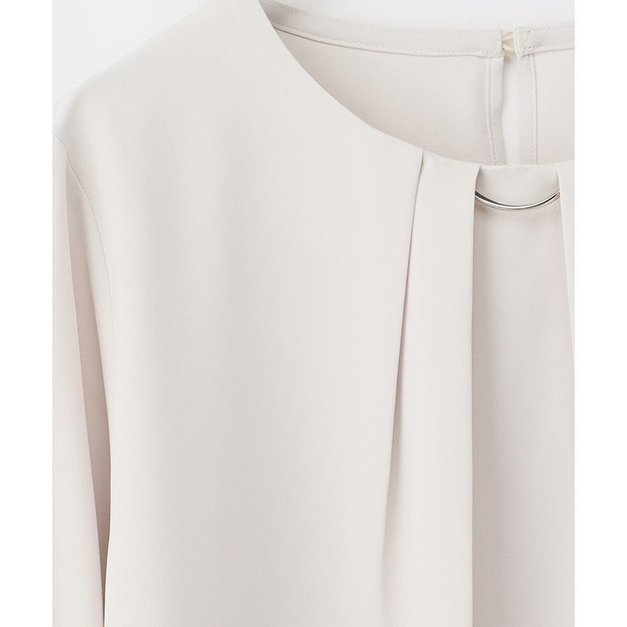 衿元にさりげない華やかさをプラスするメタルパーツのアクセサリーは、シーンやコーデに合わせて取り外し可能。