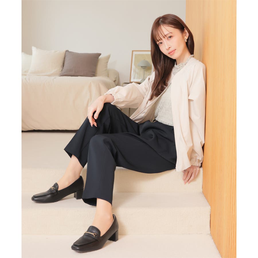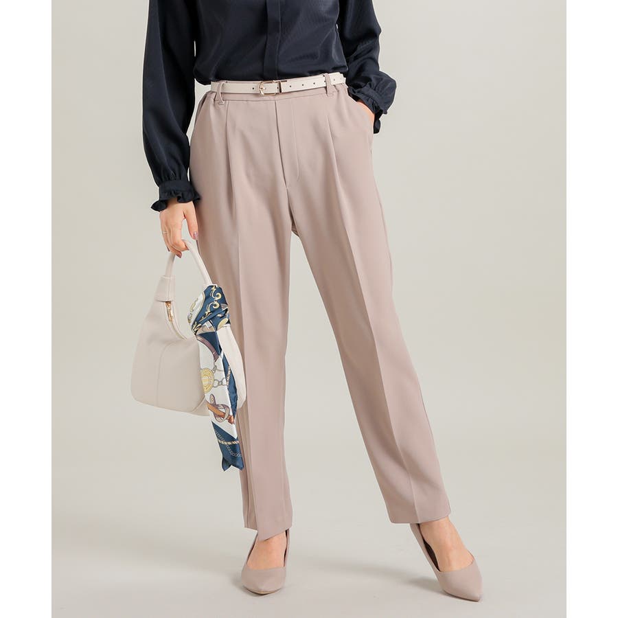 縦ラインを強調するセンタープレスと、腰回りのラインにこだわった、裾に向かって細くなる美しいシルエットで美脚効果も抜群。
