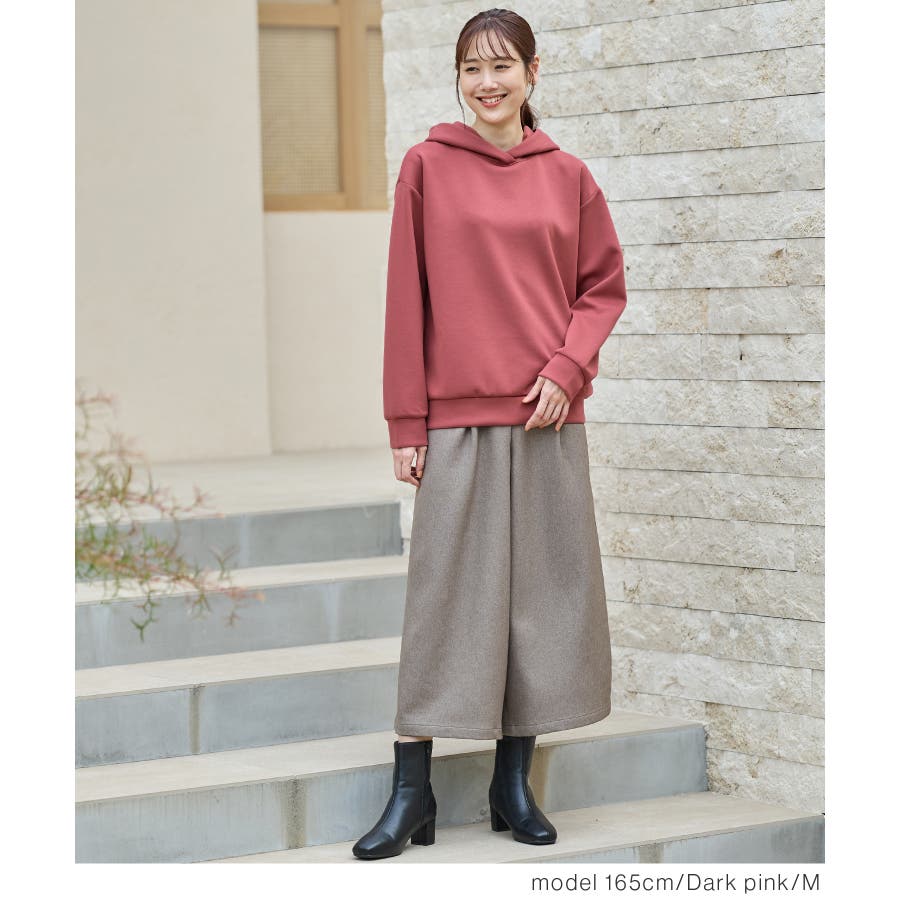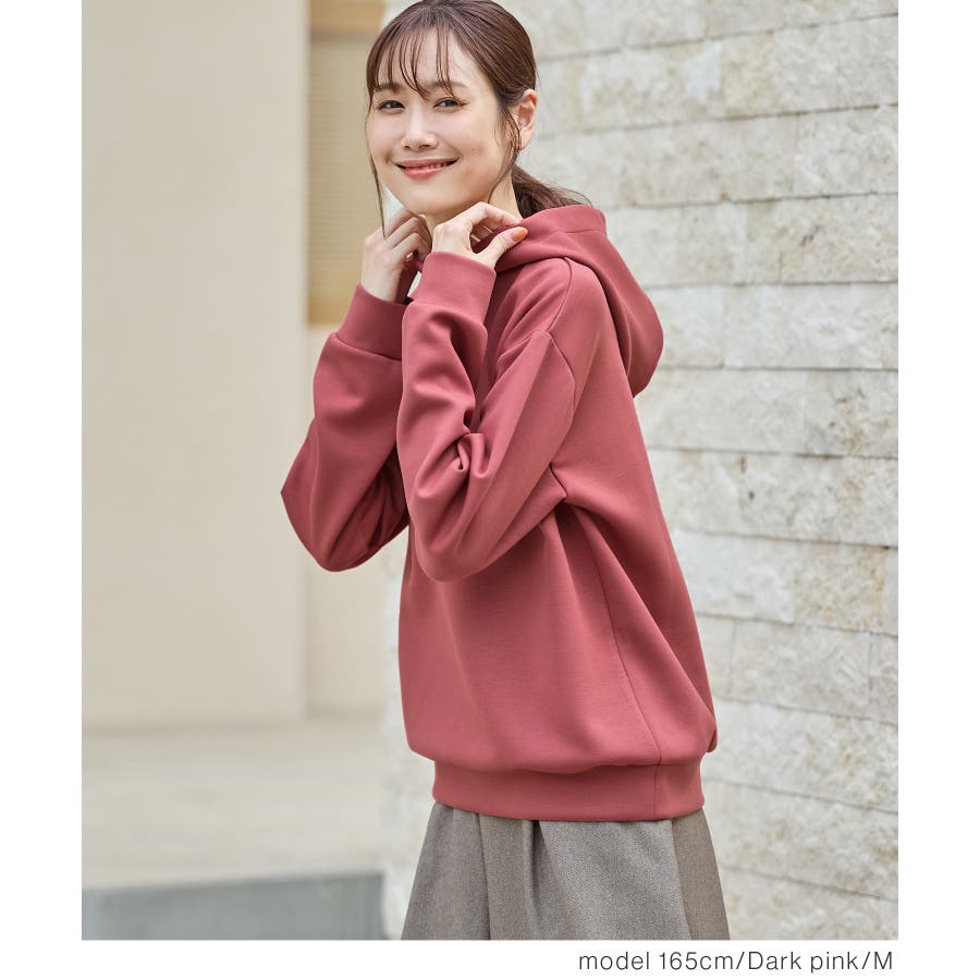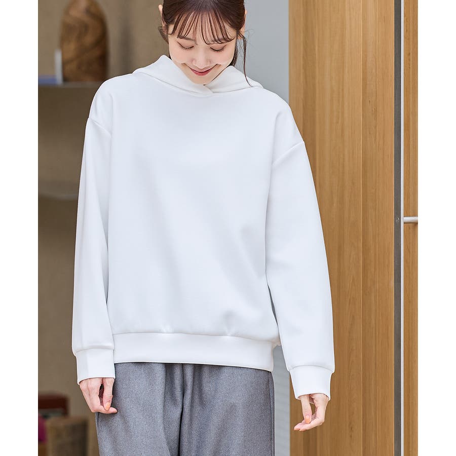 ストレッチが利いた、両面が滑らかなレーヨン混のきれいめスウェット素材。