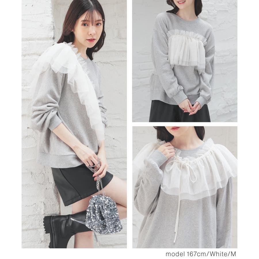 商品カテゴリ:6850119093 トップス スウェット 長袖 トレーナー 綿 3WAY オーバーサイズ ゆったり 付け衿 リボン ガーリー オールシーズン 白 黒 カテゴリ103510 tops sweatshirt 裏毛 スエット 長そで コットン オーバーシルエット 体型カバー ゆる ビッグシルエット ラフ リラクシー つけ衿 つけえり 襟 衿 付け襟 つけ襟 レイヤード カジュアル ガーリーカジュアル 女の子 女子 可愛い かわいい kawaii おしゃれ タグ3way Sサイズ S 小さいサイズ Mサイズ Lサイズ LLサイズ LL 大きいサイズ FP401 高校生 大学生 10代 20代 若い 学生 スクール ティーン ヤング JK JD トレンド 流行 中学生 人気 シーズンオール 春 春物 春服 春夏 夏 夏物 夏服 秋 秋物 秋服 秋冬 冬 冬物 冬服 新作 新着 ホワイト スミクロ グレー 灰色 ブラック クロ 杢グレー 9093 685-11-9093 6850119093 COLZAコルザhoneysハニーズ 685011909331 フリル付ゆるトップス 価格2980
