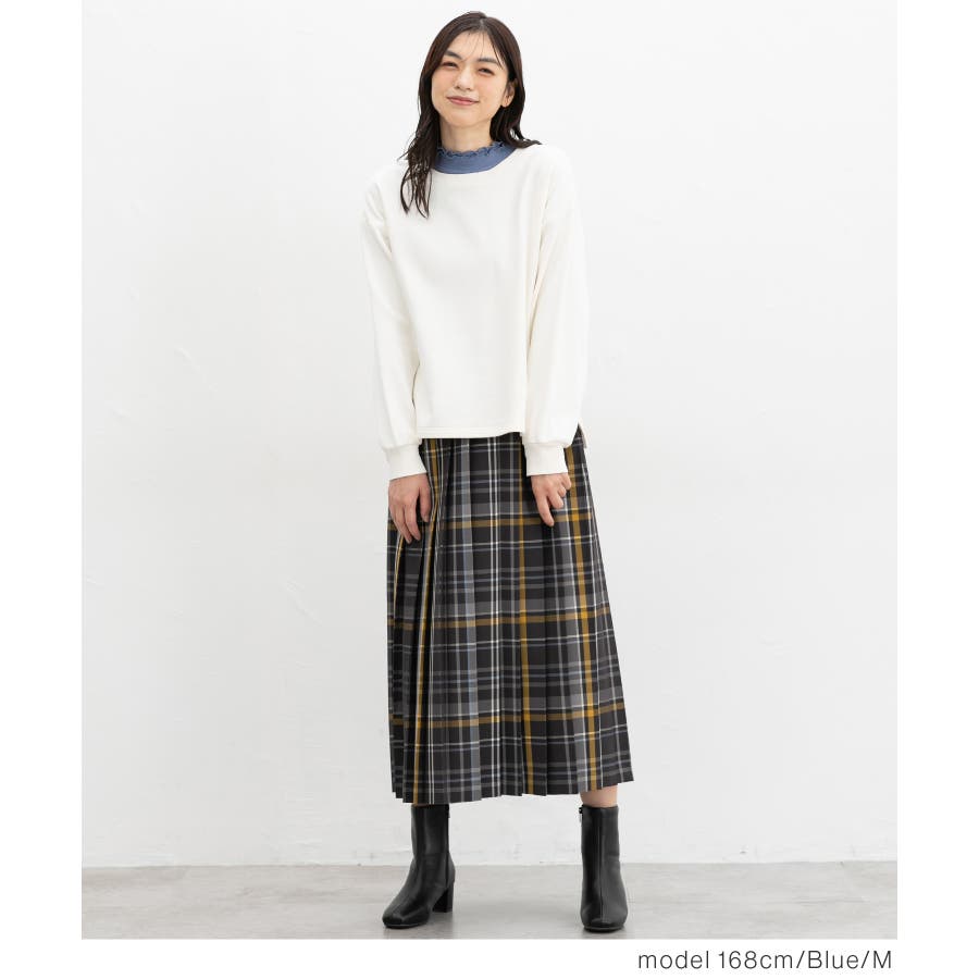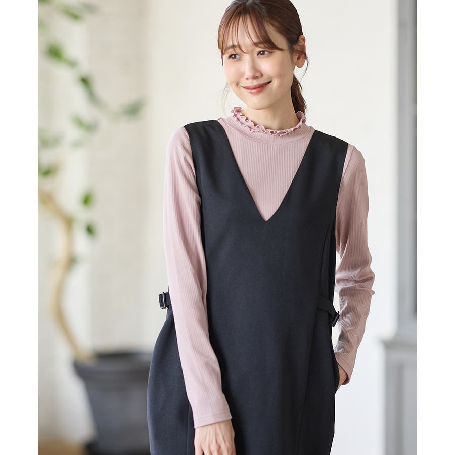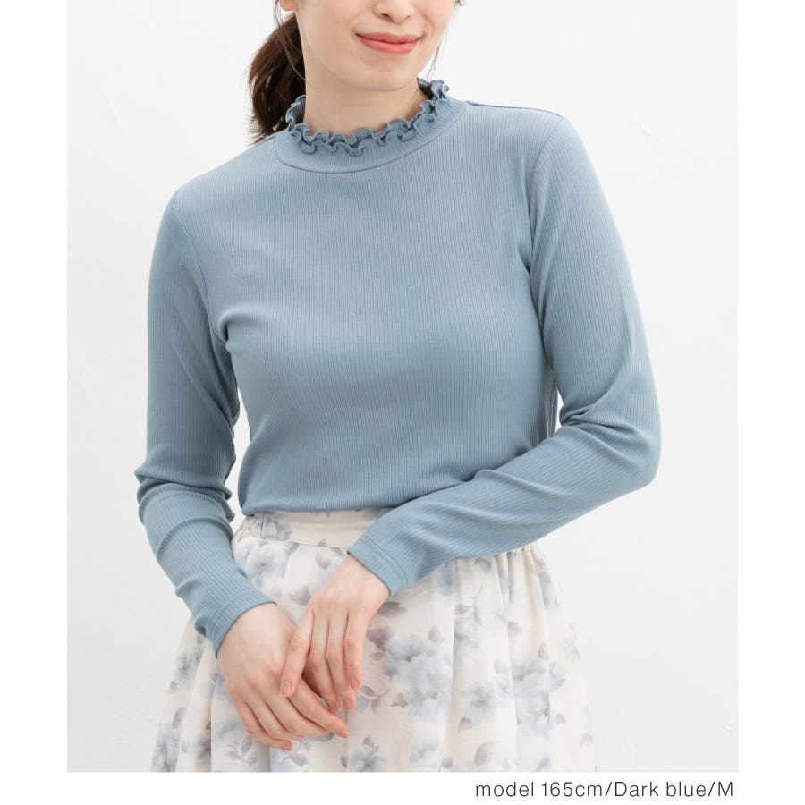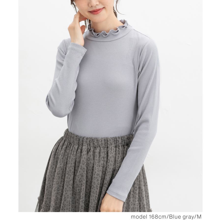 首元を隠してあったかな、程よい高さのプチハイネックに、2枚重ねのメローフリルでフェミニン感をプラス。