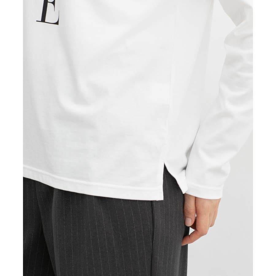 オンからオフまで着回しがきく、スリット入りのロゴプリントTシャツ。