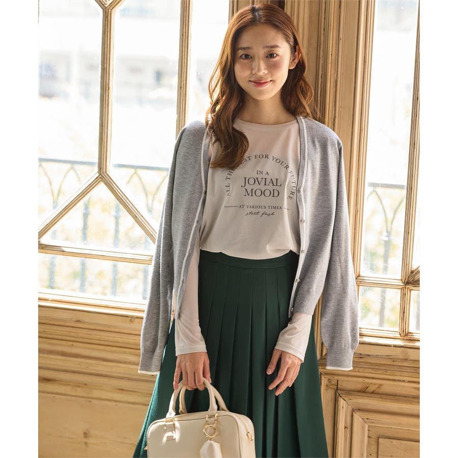 カーディガンやベスト、オールインワンのインナーなど、レイヤードスタイルに大活躍。