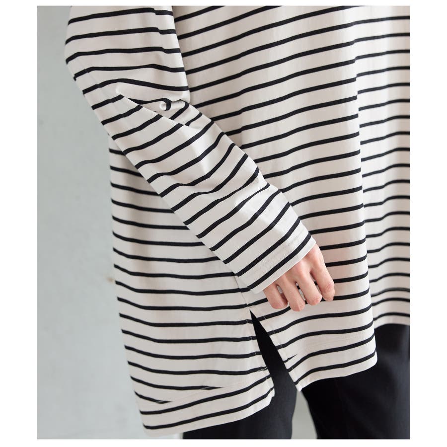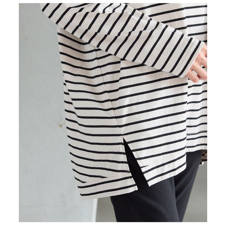 ゆったり幅とヒップがすっぽり隠れる丈感で体型もカバー。