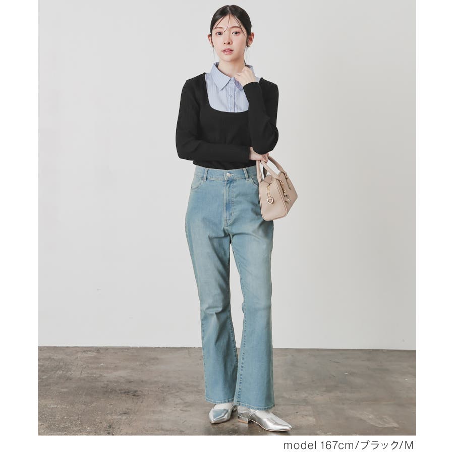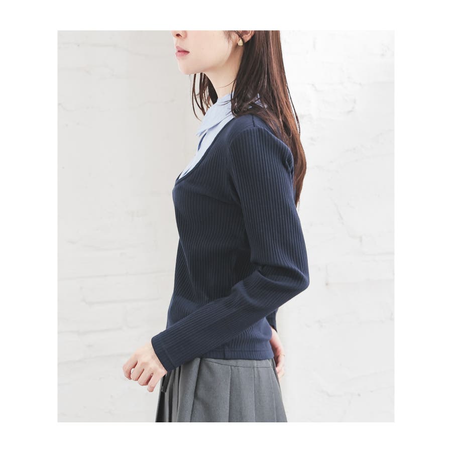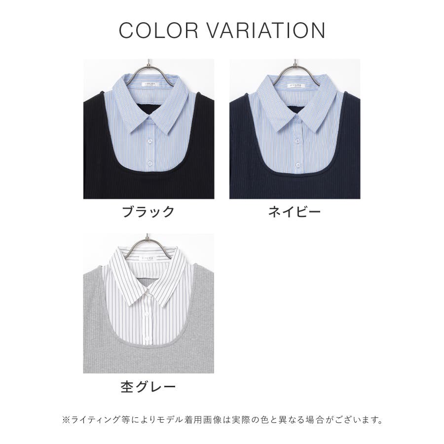 シャツ部分はレギュラーカラーで、きちんとした印象に。