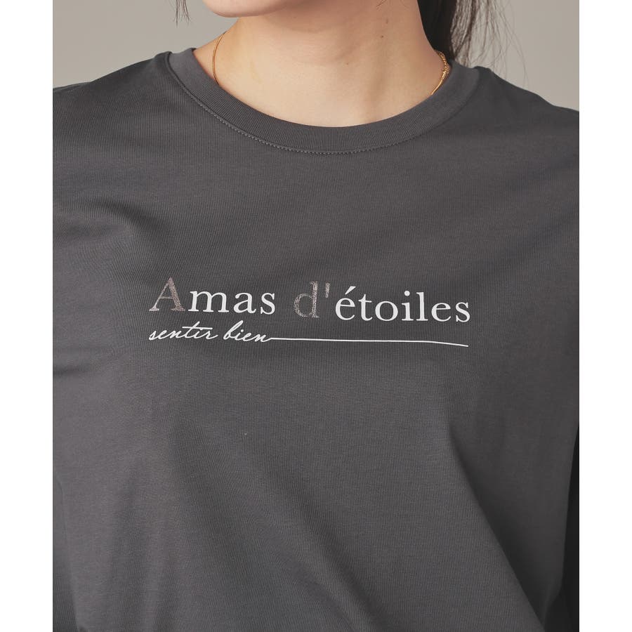 丸みのある、フェミニンなネックラインのシンプルデザインに、箔プリントで華やかさをプラス。