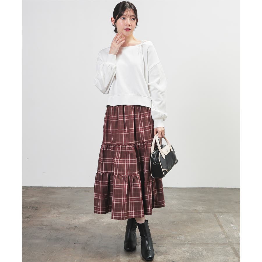 ロングボトムを合わせるとお洒落見えする大人スタイルに♪