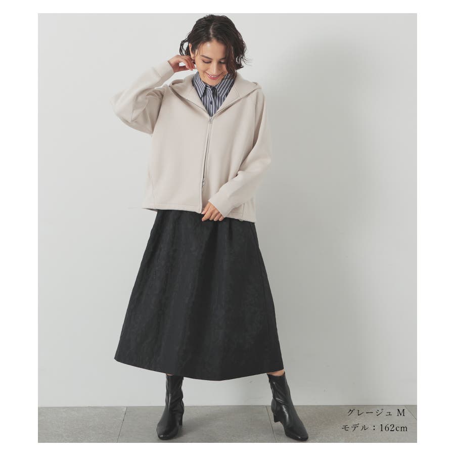 裾を絞ったシルエットにすると、フレアスカートやワンピース合わせに◎