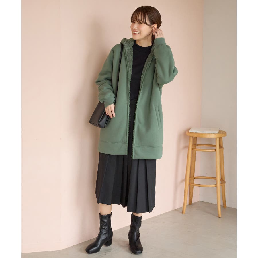 重ね着もしやすいゆったり幅とヒップがすっぽり隠れる長めの丈で、さらにあったかさアップ♪