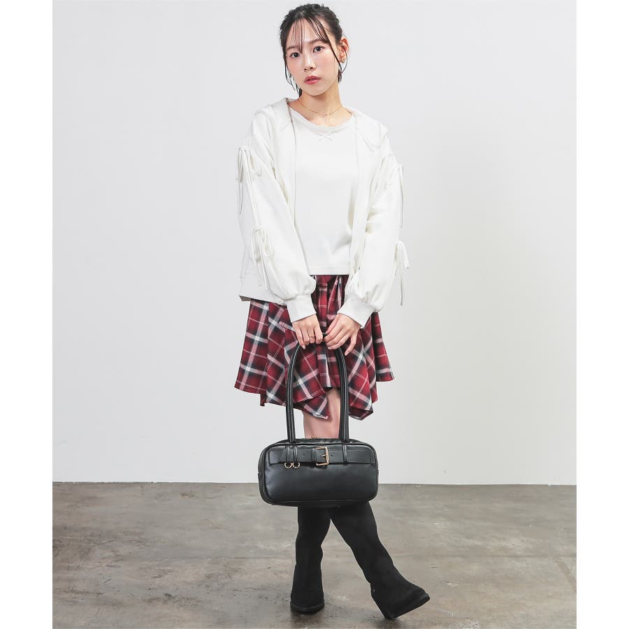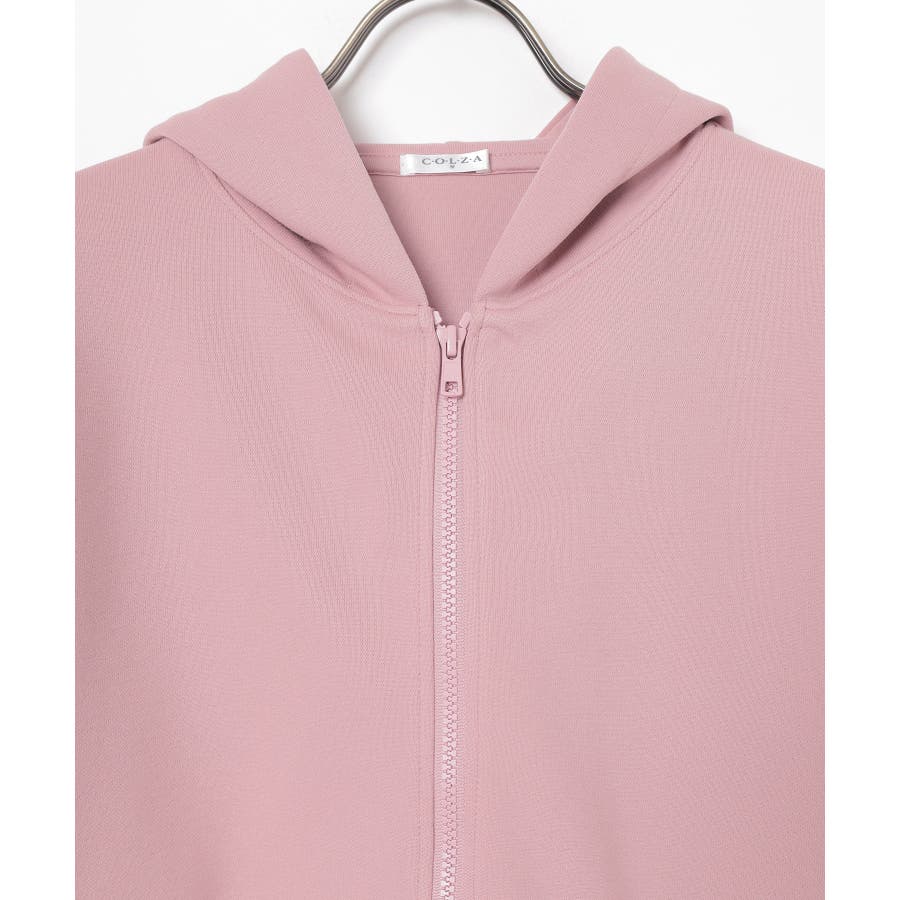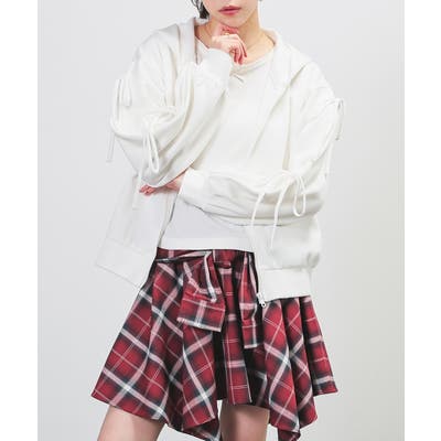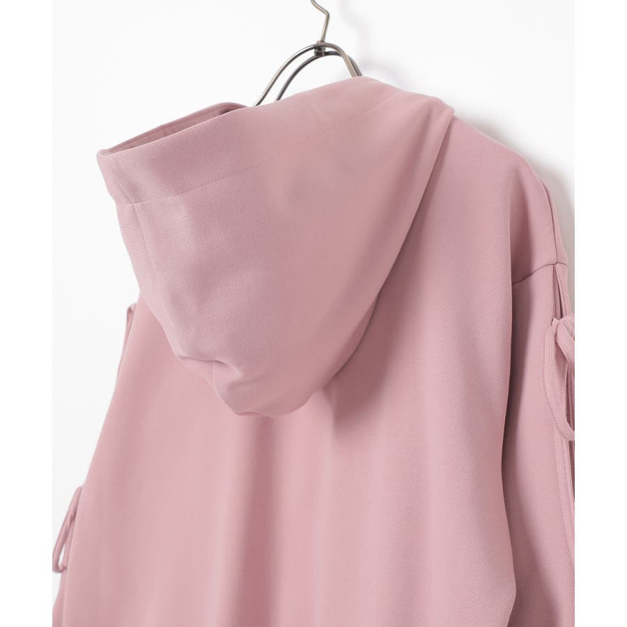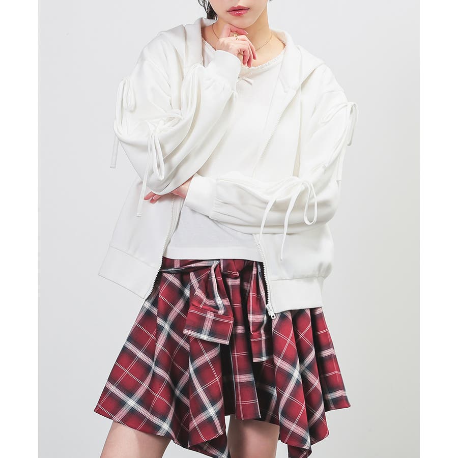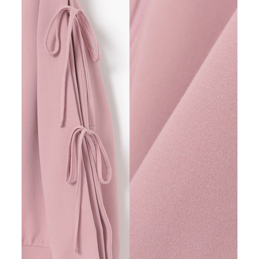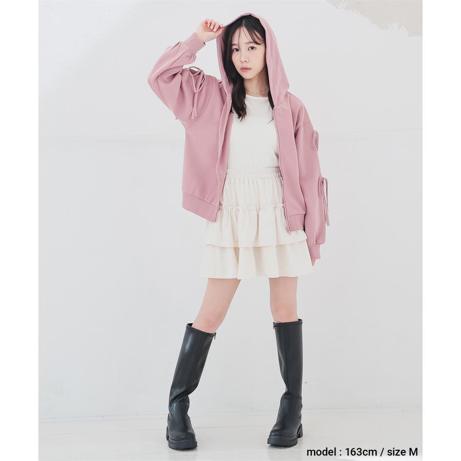 シンプルなジップパーカーの袖に、甘すぎない同色リボンをプラスしたキュートなデザイン。