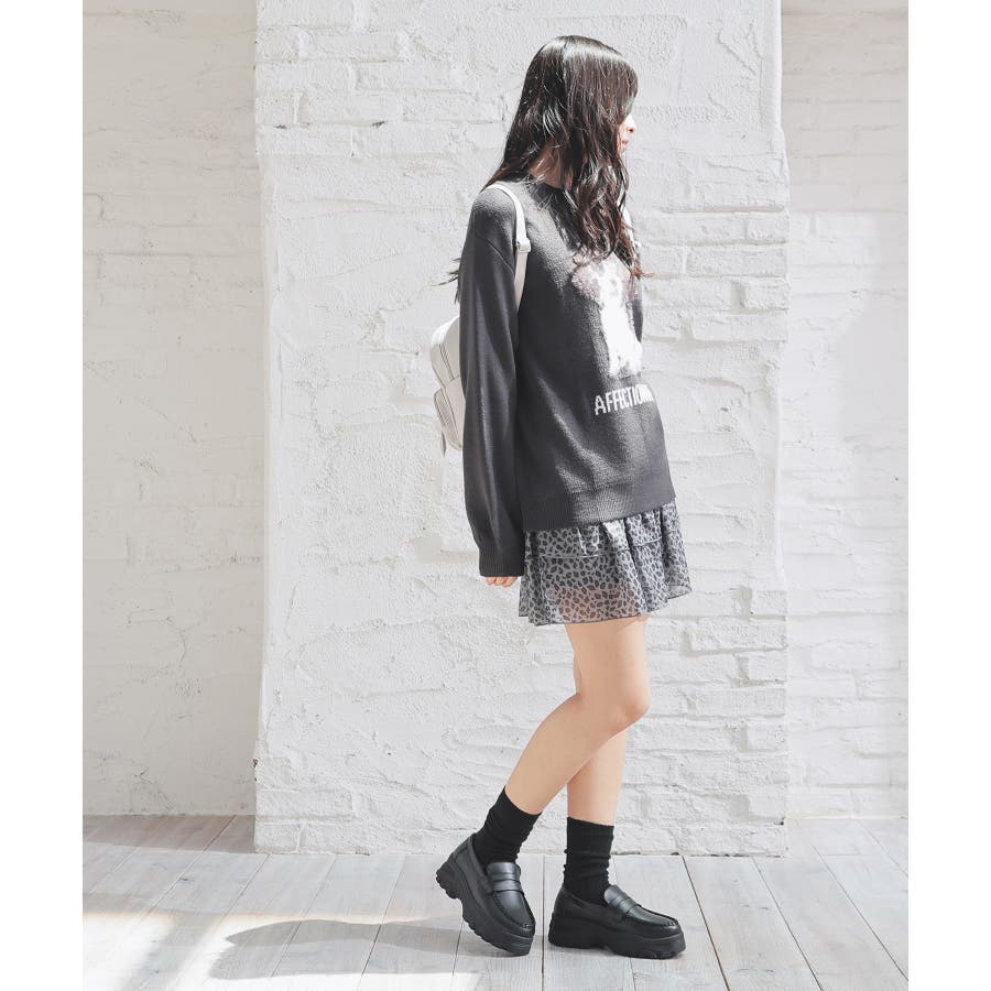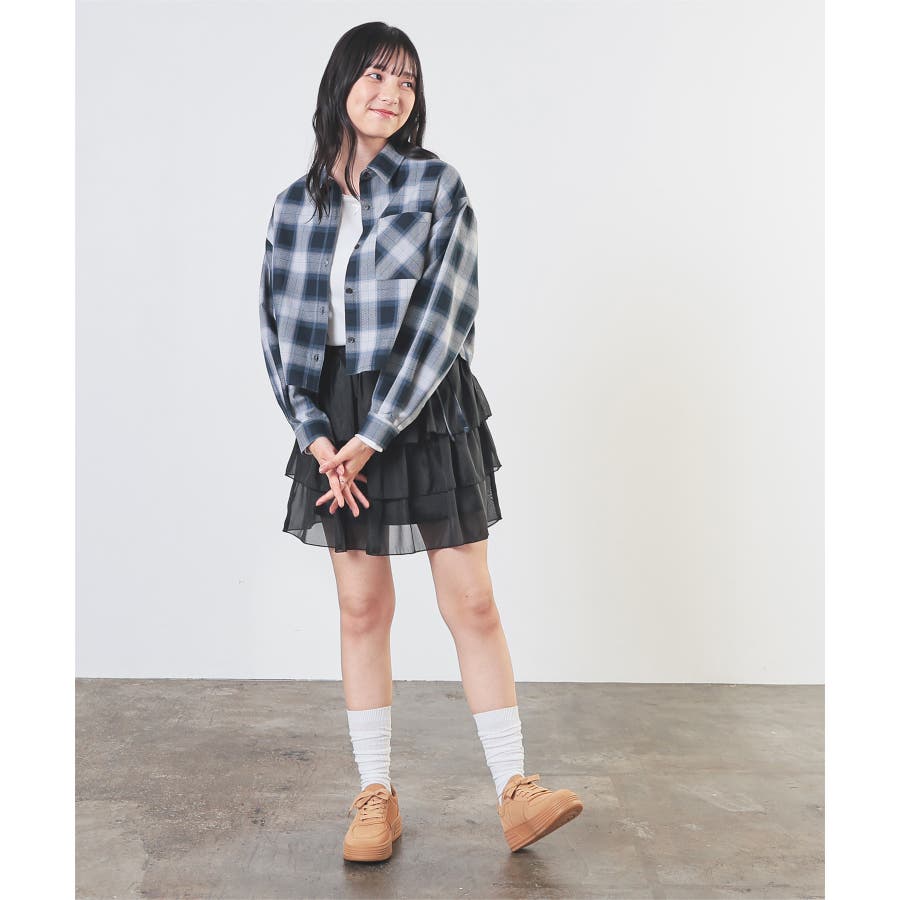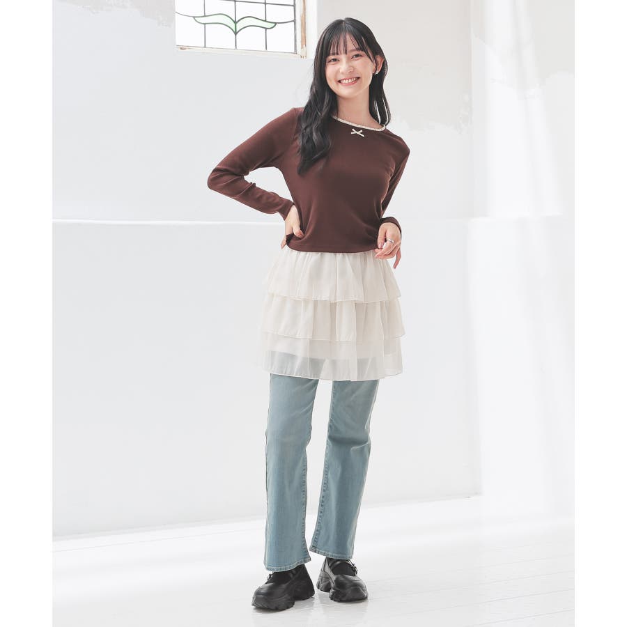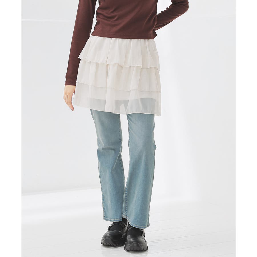 大きめスウェットやカーデと合わせて裾からチラっとフリルを見せるのも◎