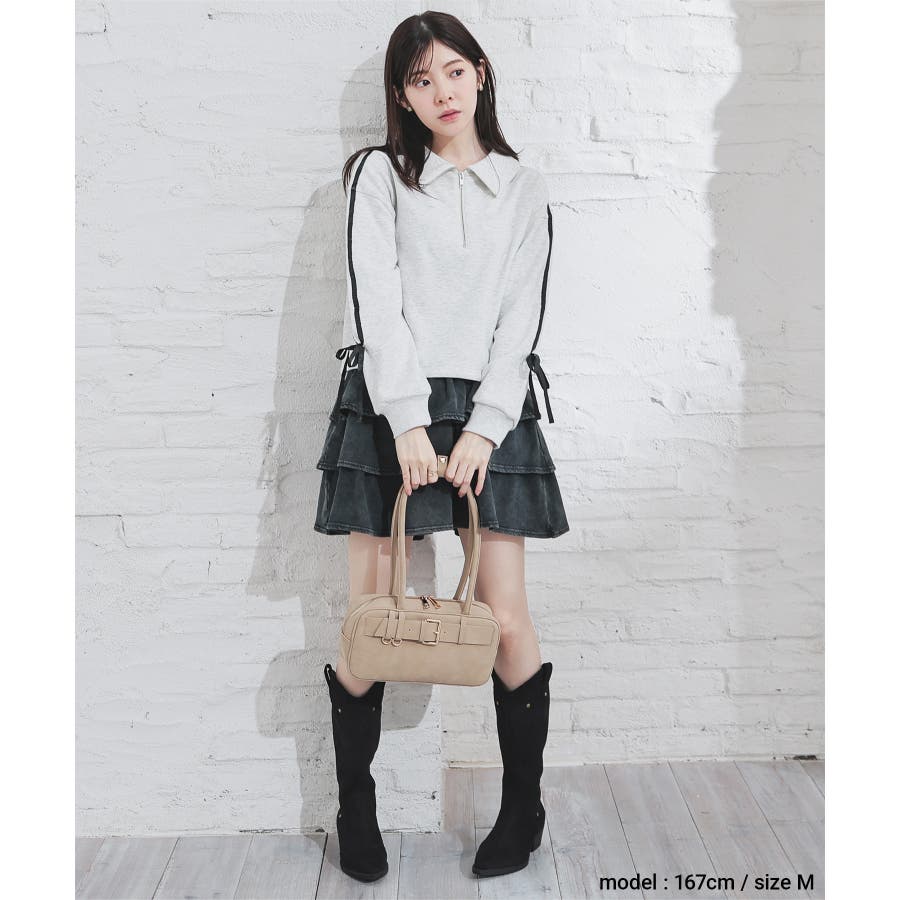 カジュアルな素材ながら、甘めのデザインでガーリーな雰囲気に。