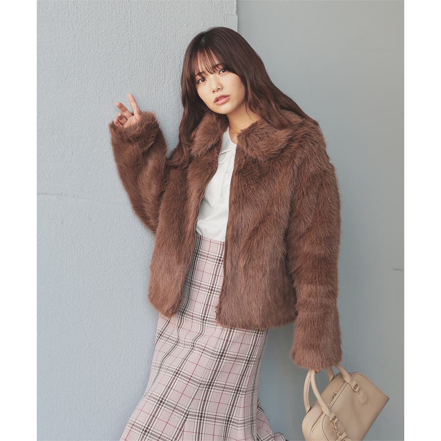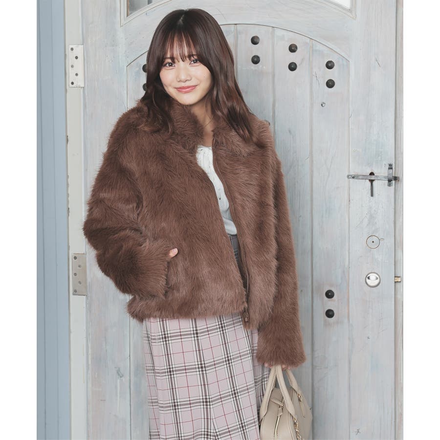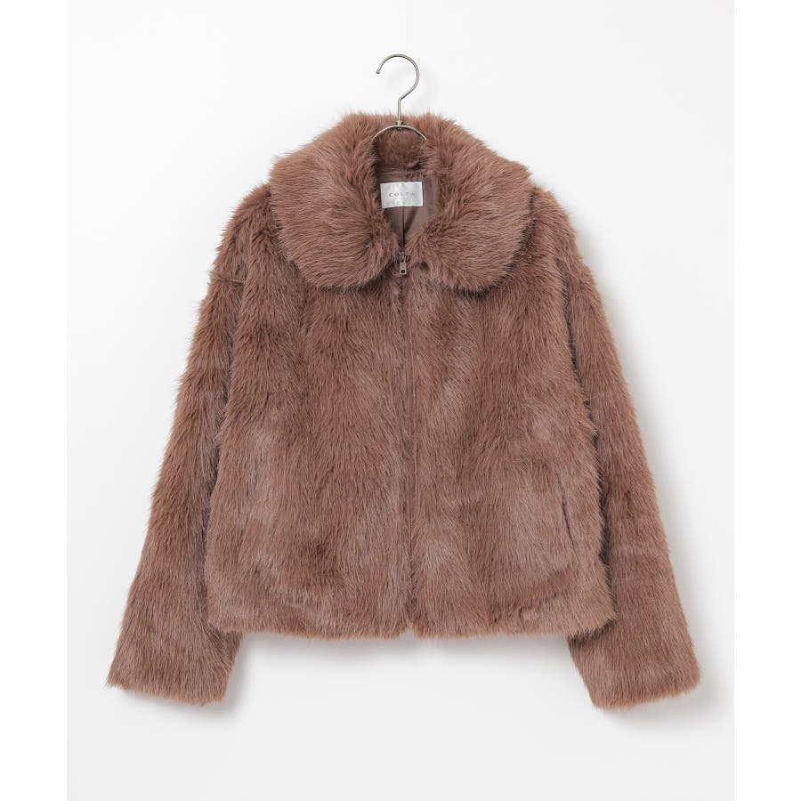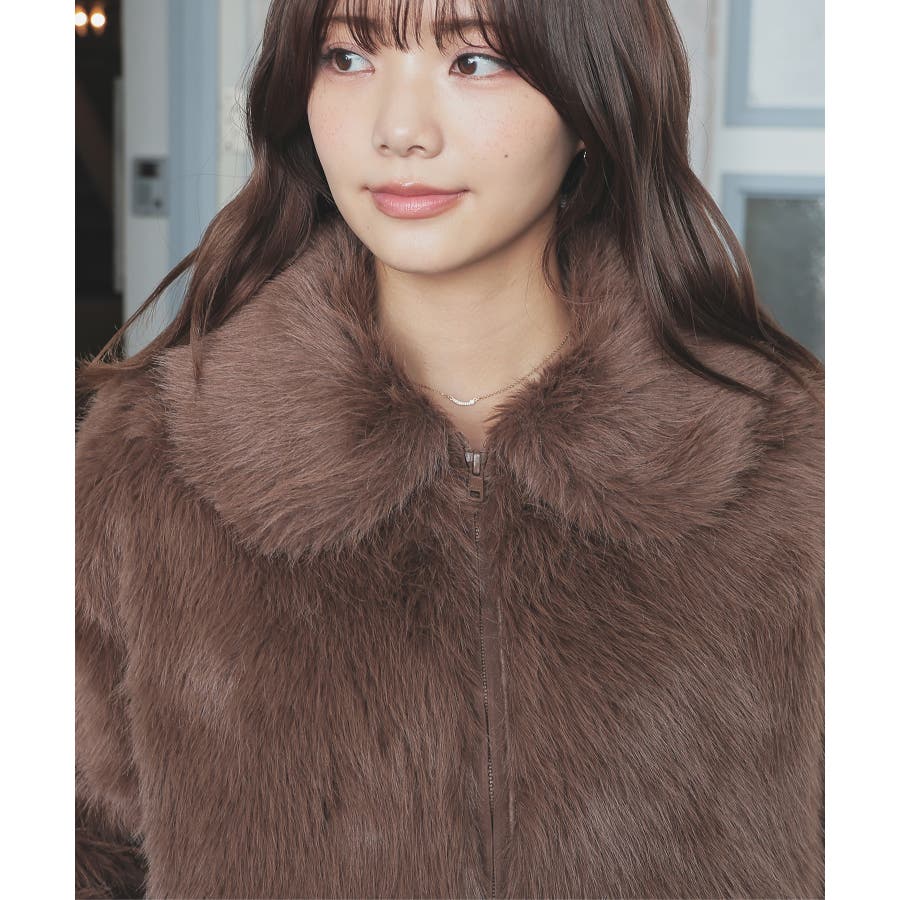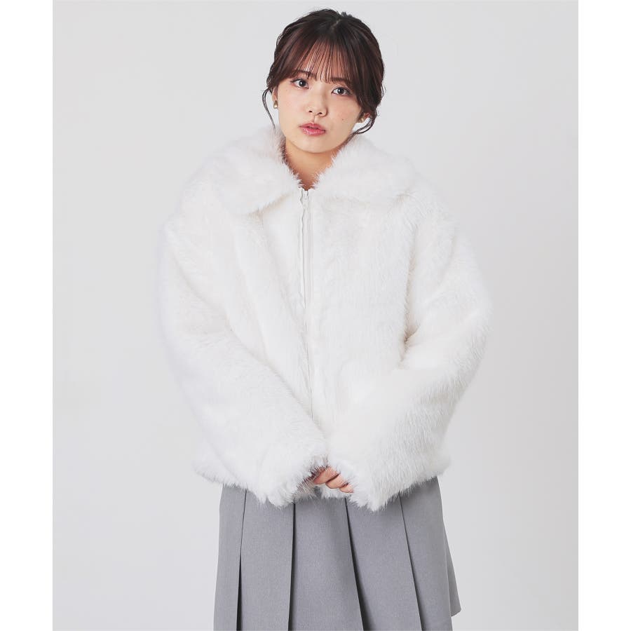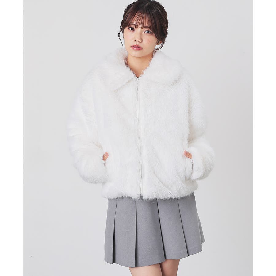 シーズンムードたっぷりなふわもこの、小顔効果も期待できる大きめ衿付きデザイン。