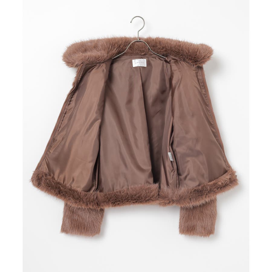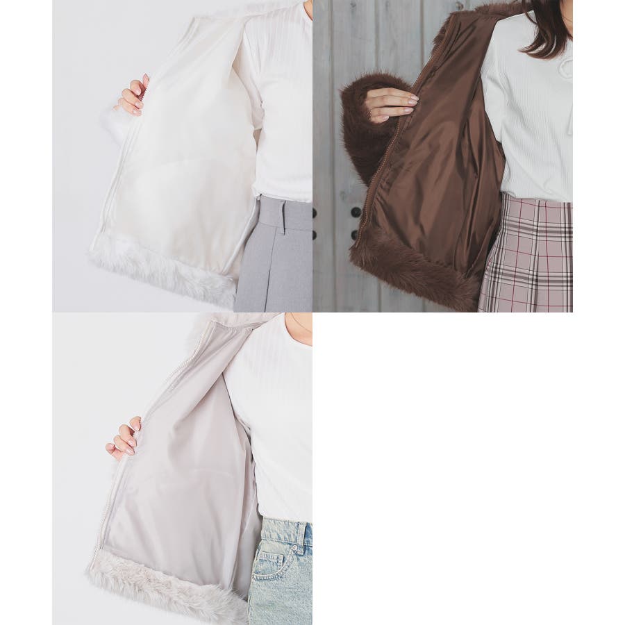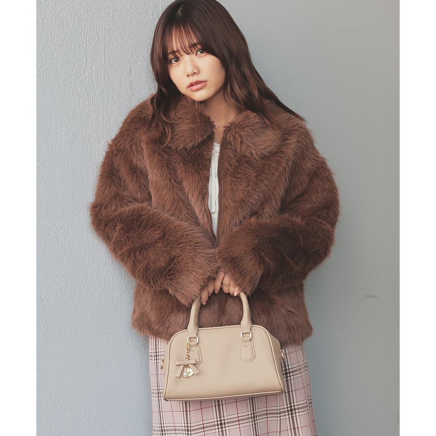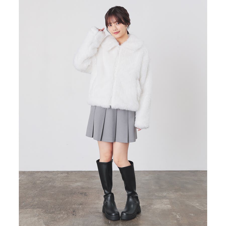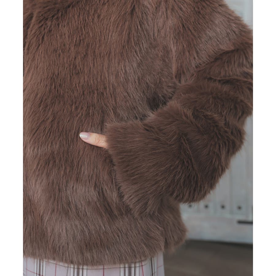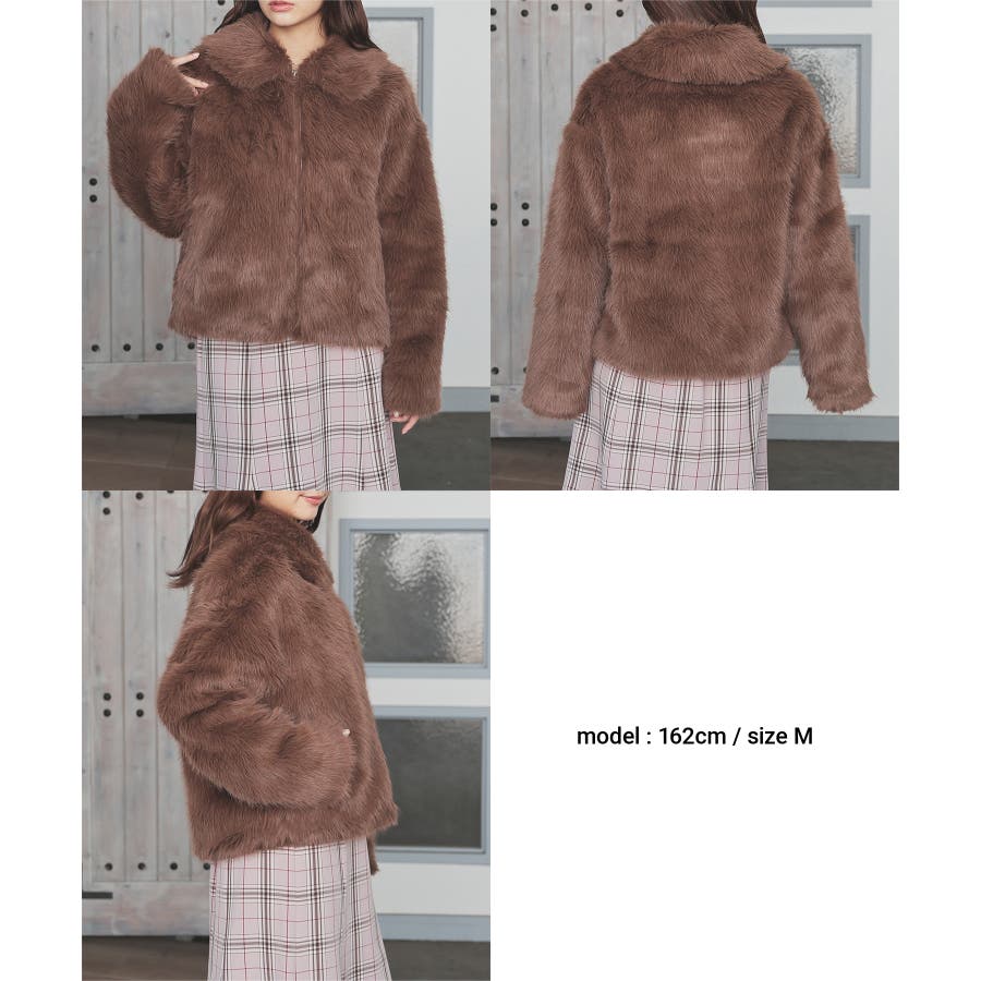 シーズンムードたっぷりなふわもこの、小顔効果も期待できる大きめ衿付きデザイン。