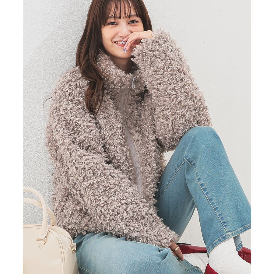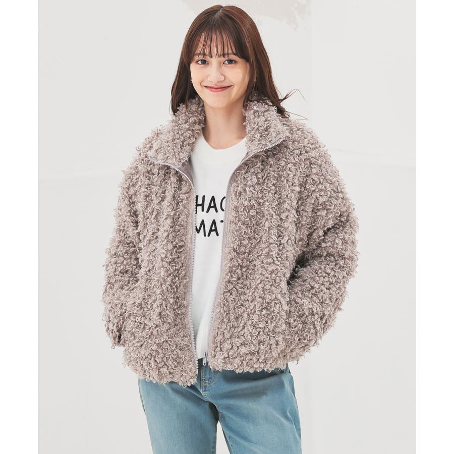 くるくるとした毛並みが可愛い、スタンドカラーのシンプルデザイン。