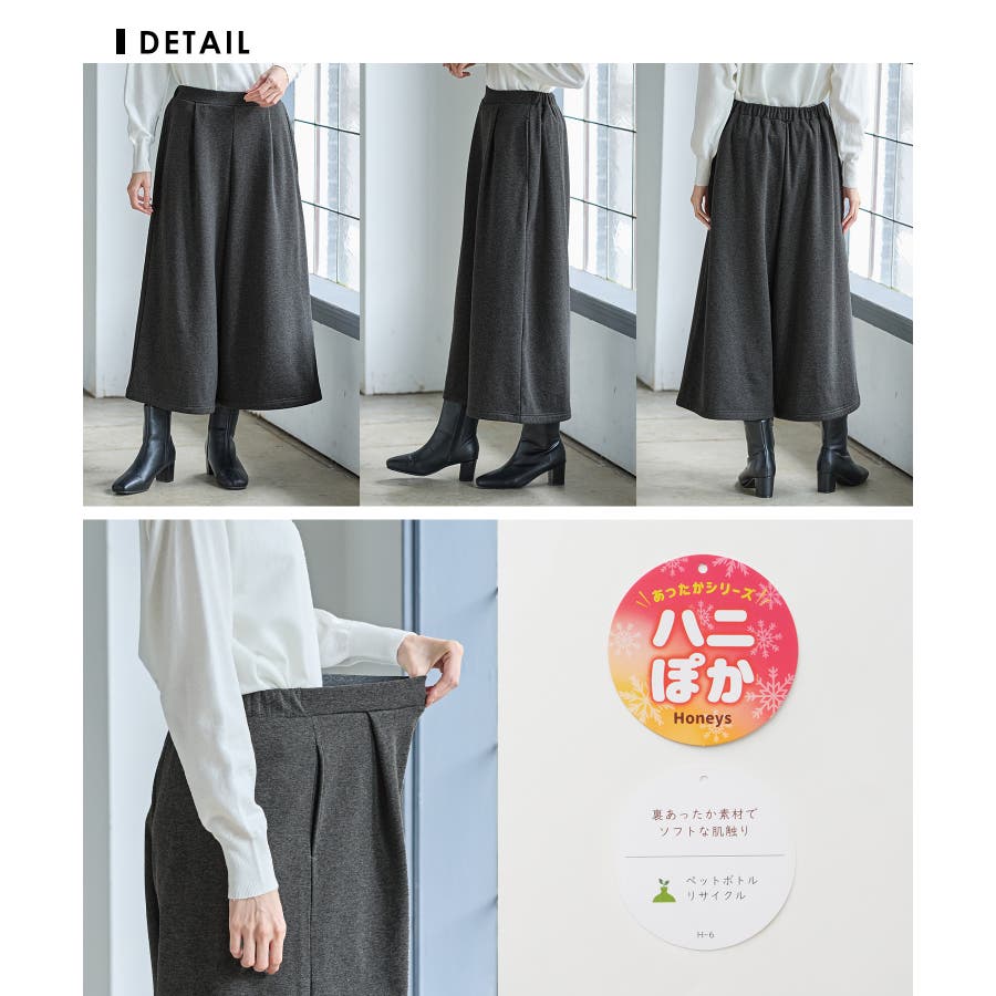商品カテゴリ:6850740907 ボトムス パンツ ハニぽか あったか 大きいサイズ ガウチョパンツ 裏毛 ストレッチ 綿混 ポケット ウエストゴム 無地 フェミニン 冬 黒 カテゴリ202010 bottoms pants 暖かい あったか素材 XLサイズ 3Lサイズ XL 3L スカーチョ ワイドパンツ スカンツ フレアパンツ スカート風 スカート見え 秋 再生ポリエステル リサイクル 再生ポリ 環境保護 サスティナブル サステナブル エコ 秋冬 裏シャギー 伸縮 伸びる 動きやすい cotton 天然素材 コットン 綿 ポケット付き 楽 ゆったり ゴム 裾ゴム きれいめ 上品 可愛い おしゃれ 清楚 大人可愛い タグハニぽか(H-6) Sサイズ S 小さいサイズ Mサイズ Lサイズ LLサイズ LL FP702 ノンエイジ 30代 40代 50代 エイジレス 大人 ミセス シンプル スタンダード ベーシック ラフ 定番 カジュアル 大人カジュアル ママコーデ ママ 公園 ママファッション シーズン冬 冬物 冬服 冬春 初春 春 春物 春服 新作 新着 ブラック ネイビー 紺 ブルー 青 レッド 赤 ライトレッド チャコール グレー 灰色 杢チャコール ベージュ 肌色 907 685-74-0907 6850740907 CINEMACLUB シネマクラブ honeys ハニーズ レディースファッション ladies fashion 女性 女 レディース ファッション 女性服 服 婦人服 685074090732 あったかガウチョパンツ 価格2480